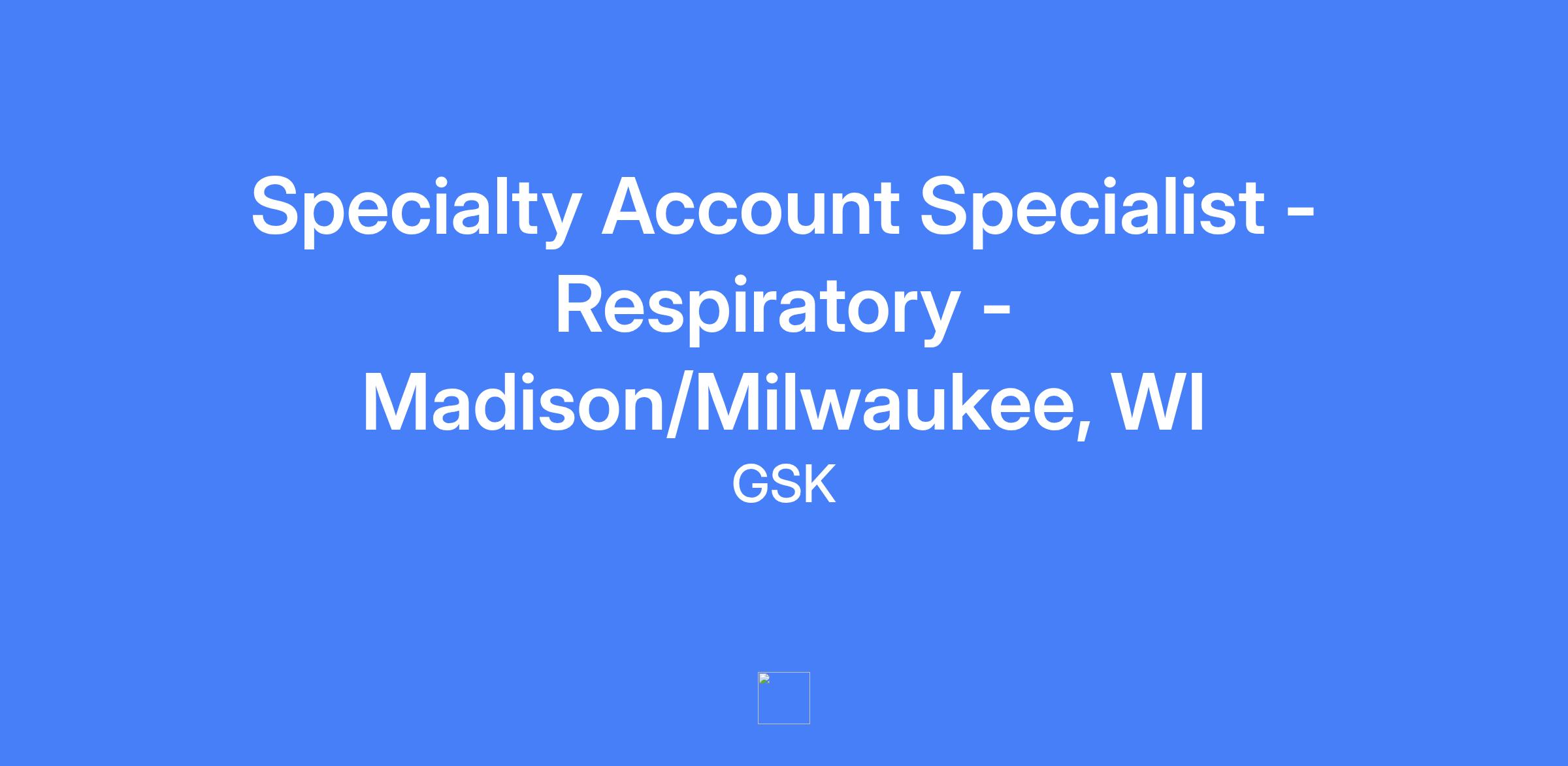 The Specialty Account Specialist - Respiratory is responsible for engaging specialist customers, delivering scientific and clinical knowledge, and developing account-specific strategies to drive growth for a GSK respiratory portfolio. The role requires building cross-functional relationships, understanding reimbursement and distribution landscapes, and delivering education and resources to customers. The territory includes Madison and Milwaukee, WI, with the ideal candidate residing in either city.