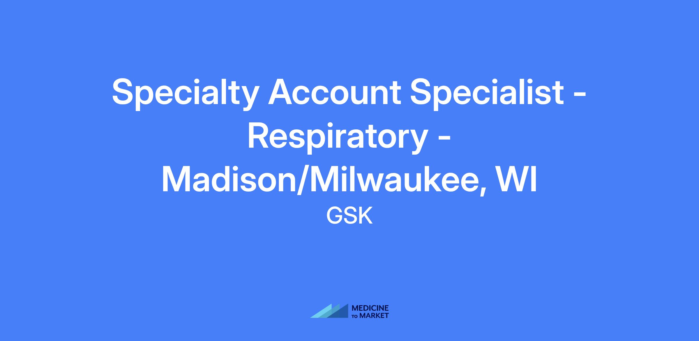 The Specialty Account Specialist - Respiratory is responsible for engaging specialist customers, delivering scientific and clinical knowledge, and developing account-specific strategies to drive growth for a GSK respiratory portfolio. The role requires building cross-functional relationships, understanding reimbursement and distribution landscapes, and delivering education and resources to customers. The territory includes Madison and Milwaukee, WI, with the ideal candidate residing in either city.