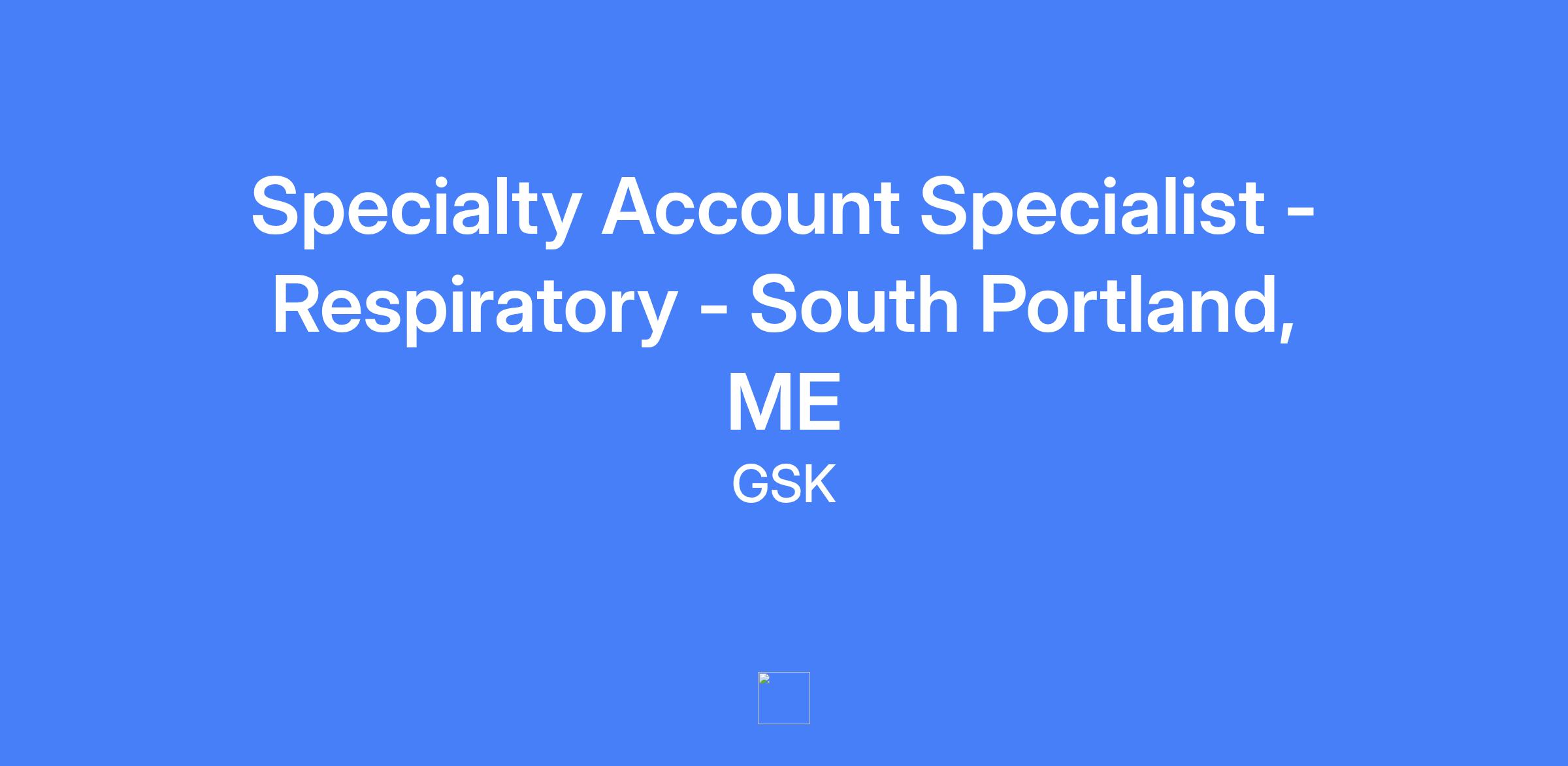 Specialty Account Specialist - Respiratory - South Portland, ME