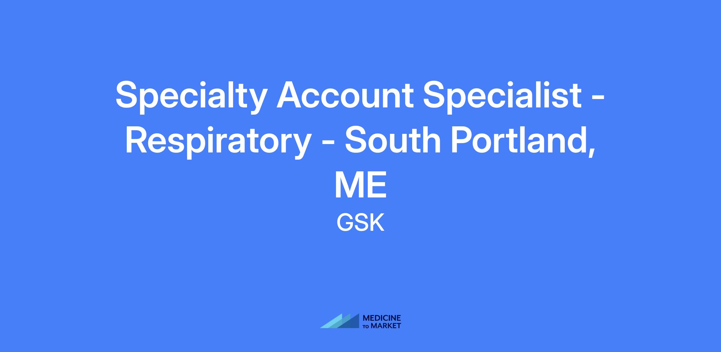 Specialty Account Specialist - Respiratory - South Portland, ME