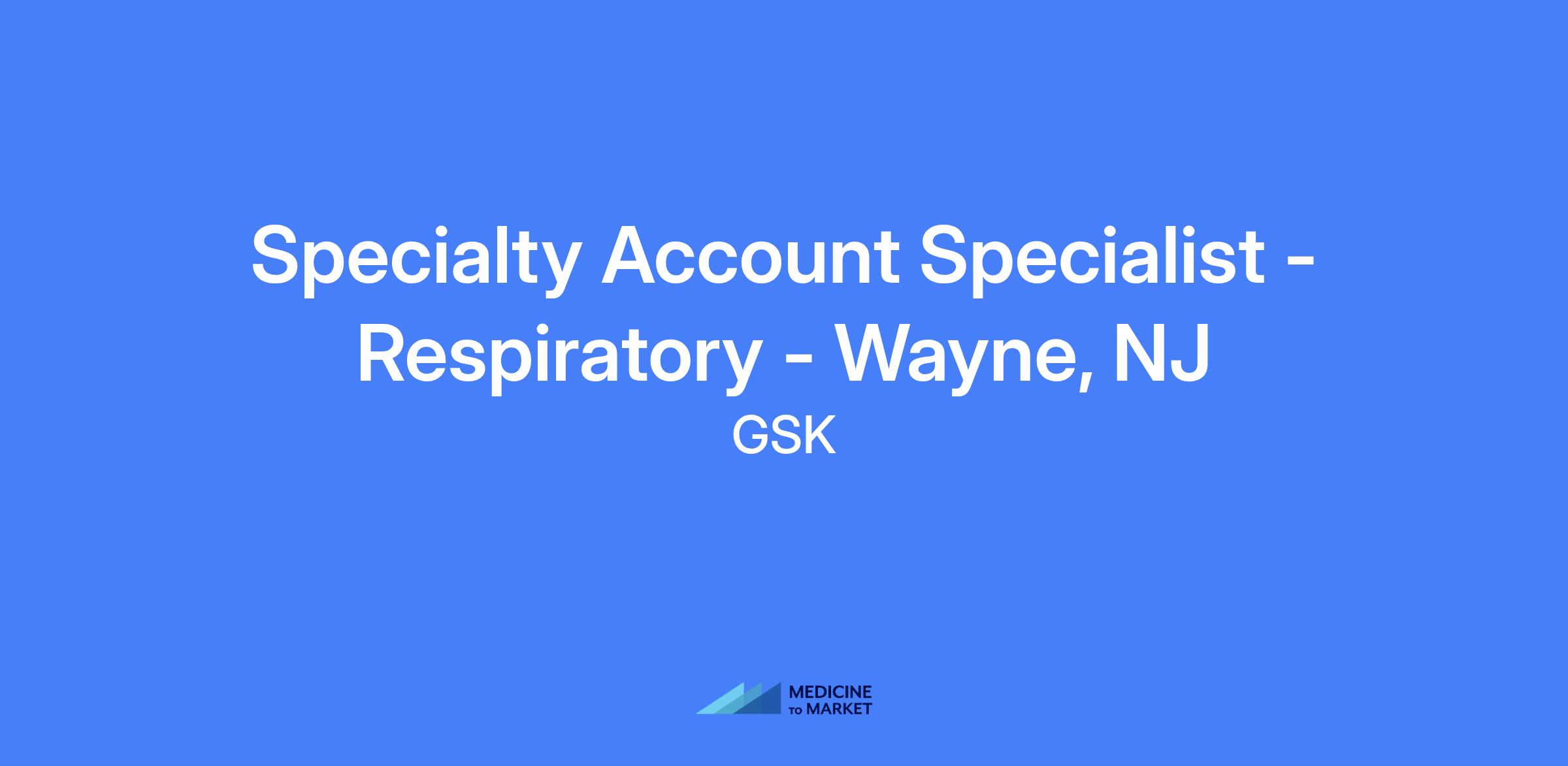 Specialty Account Specialist - Respiratory - Wayne, NJ. Responsible for promoting GSK COPD/Asthma products to physicians and allied health professionals, building relationships, and driving territory sales in accordance with product indications and prescribing information.