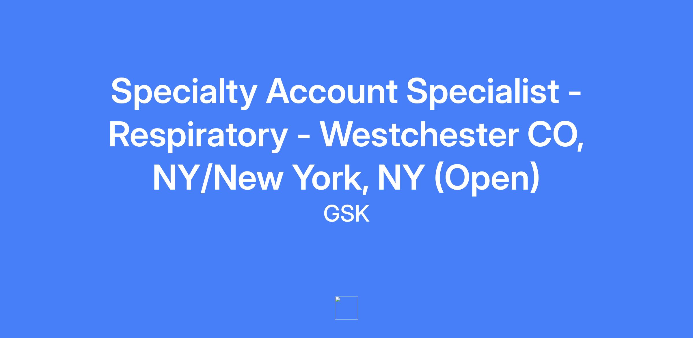 Specialty Account Specialist - Respiratory in Westchester, NY / New York, NY (Open). Territory includes Westchester County, NY, New York City and Southern Connecticut. Relocation assistance not provided.