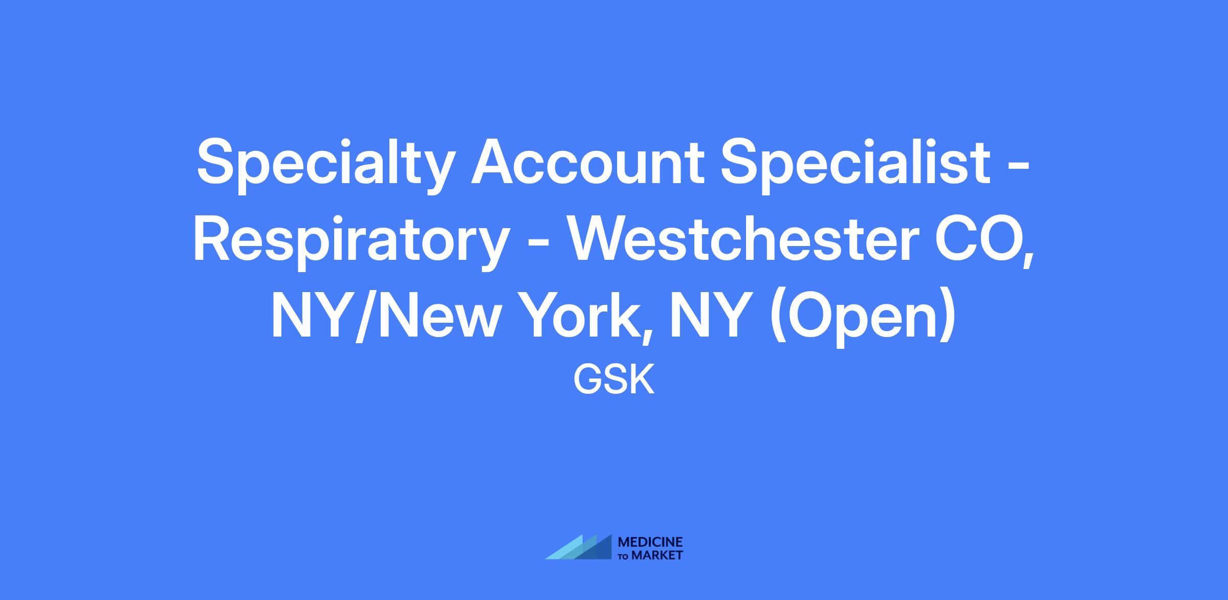 Specialty Account Specialist - Respiratory in Westchester, NY / New York, NY (Open). Territory includes Westchester County, NY, New York City and Southern Connecticut. Relocation assistance not provided.