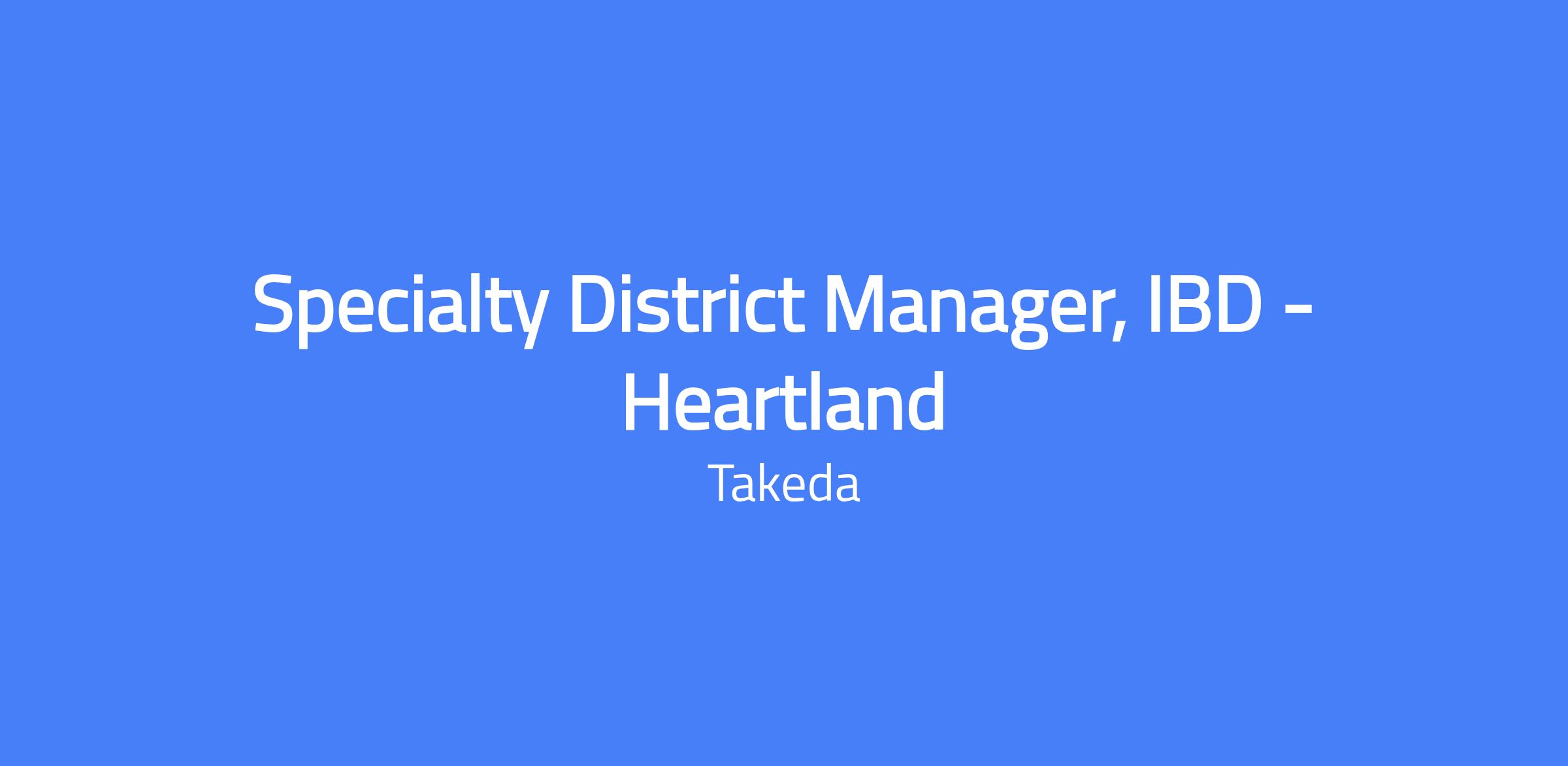The Specialty District Manager for Heartland (IBD) is responsible for planning and implementing district sales plans and coaching for success. This role builds and leads the district sales team, provides support to sales team members, and manages relationships with key customers, professionals and internal stakeholders, as well as district sales operations. The role leads a team of Specialty Sales Representatives and Specialty Account Managers promoting Takeda’s biotech products to medical professionals. Location: Ohio - Virtual.