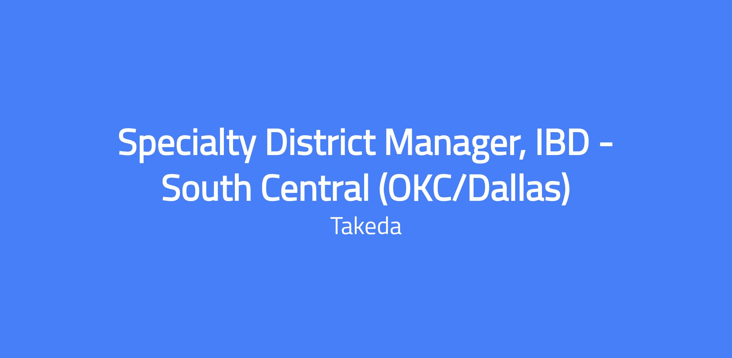 The Specialty District Manager is responsible for planning and implementing district sales plans and coaching for success. Build and lead the district sales team; coach sales team members; establish and manage relationships with key customers, professionals, and internal stakeholders; manage district sales business operations (policies/procedures, budgets, sales/account data, etc.). Directly leads and manages a team of Specialty Sales Representatives and Specialty Account Managers promoting Takedaโs biotech products to medical professionals.