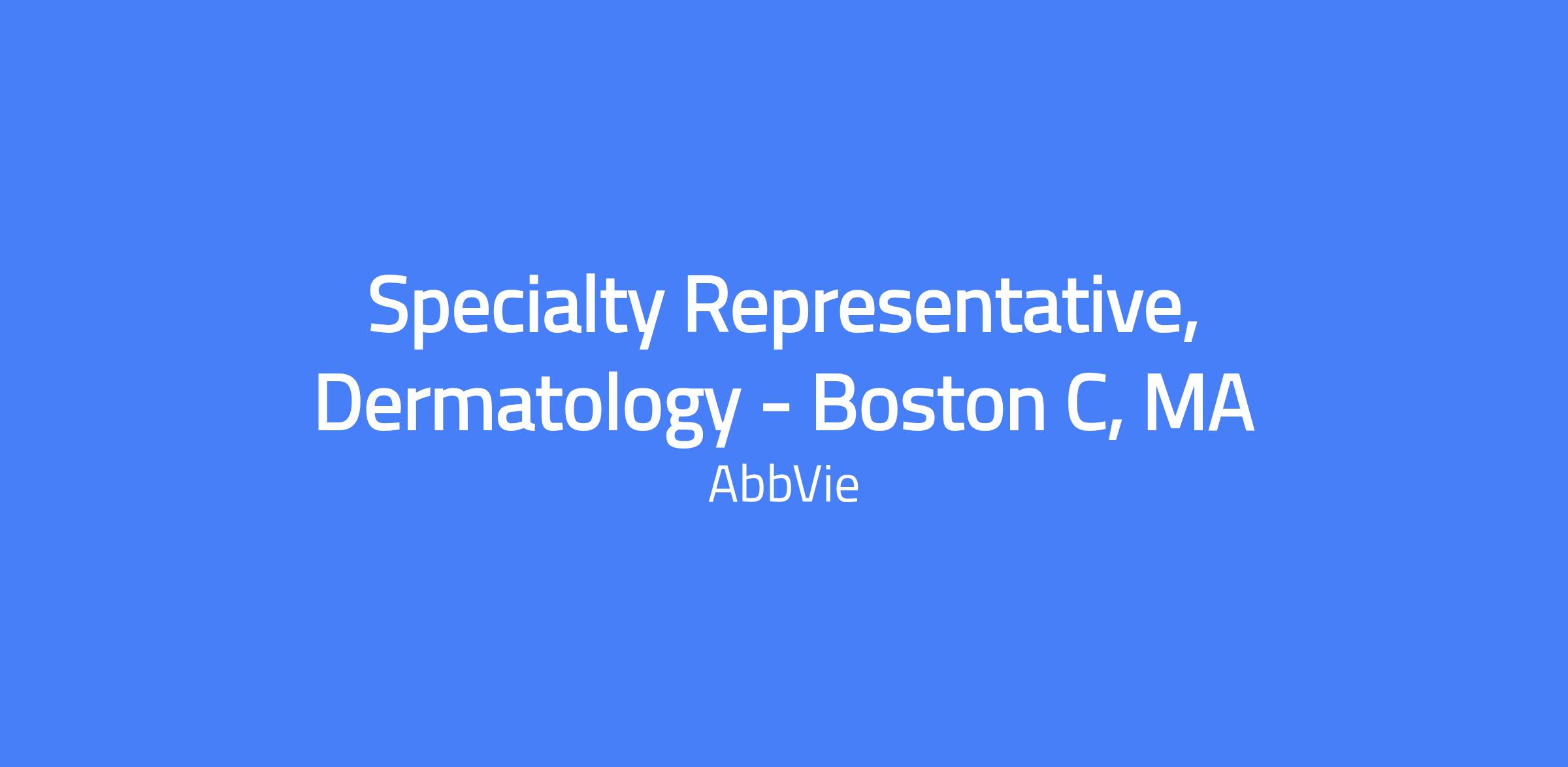 Field-based Dermatology Specialty Representative responsible for executing brand strategy and tactics, managing the assigned territory and targeted accounts, and building strong customer relationships to maximize short- and long-term sales performance. The role focuses on customer needs solving and patient-centric care within AbbVie’s business code of conduct, policies and applicable laws. Geographic coverage includes Boston, Lexington, and Waltham areas; candidates should reside within a reasonable distance from the primary city. Talent will be hired at a level commensurate with experience.