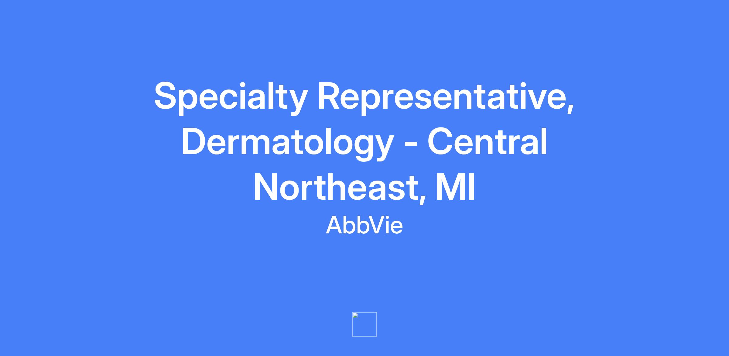 Specialty Representative, Dermatology - Central Northeast, MI. Field-based role requiring residence within a reasonable distance of the primary city; talent hired at a level commensurate with experience.