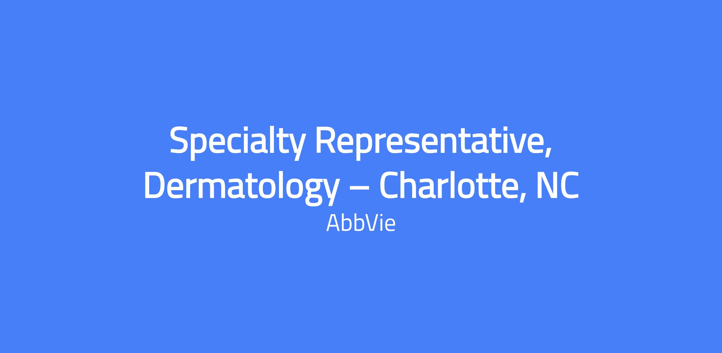 Field-based Specialty Dermatology Sales Representative serving the Charlotte, NC area (including Huntersville, Gastonia, Matthews, and Fort Mill). Responsible for executing brand strategy and tactics, managing the assigned territory, building strong customer relationships, and solving customer needs to maximize short- and long-term sales while placing the patient at the center of the effort and complying with AbbVie policies and applicable laws.