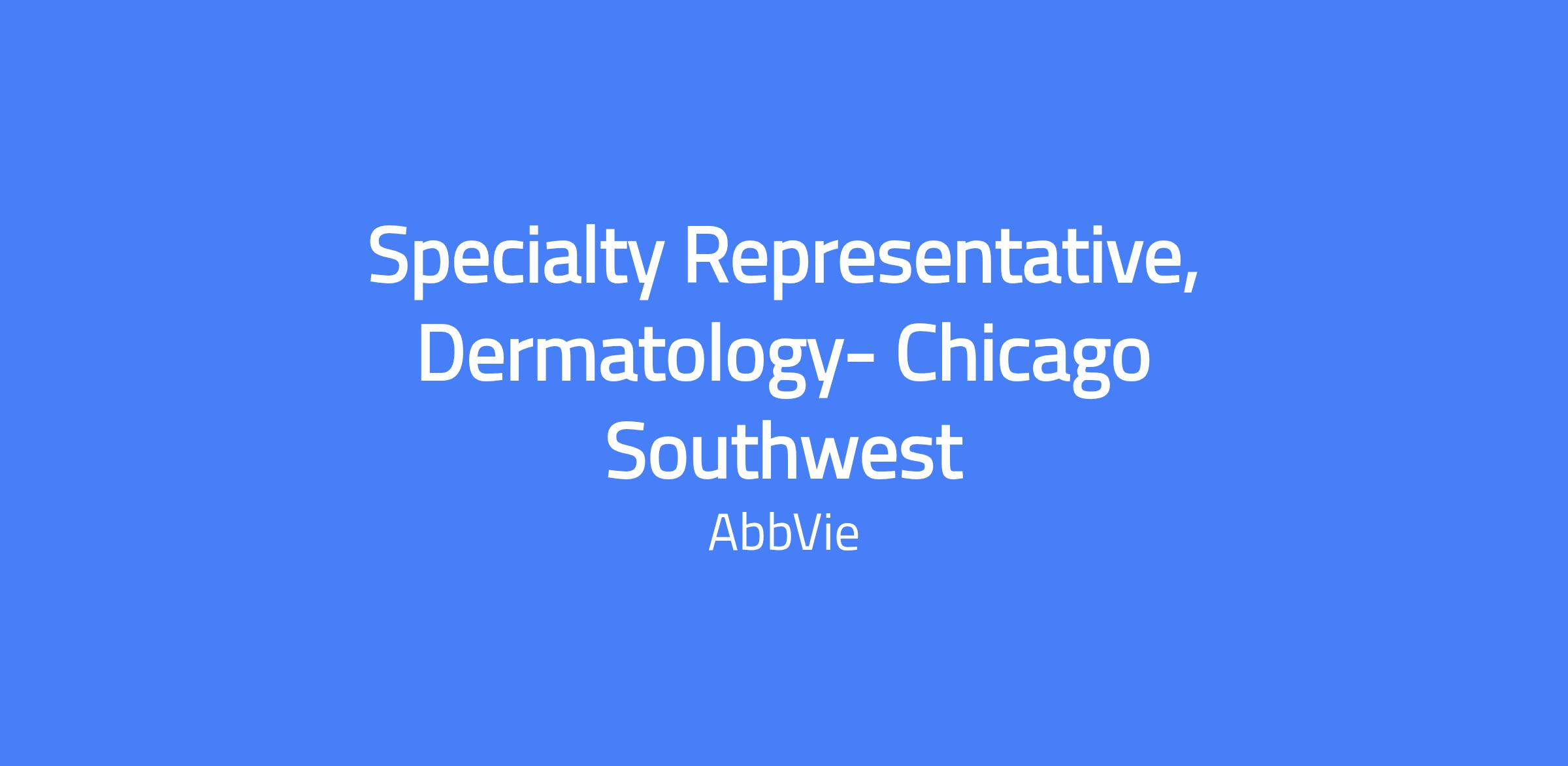 This field-based Specialty Representative, Dermatology role is based in the Chicago Southwest region. You will execute brand strategy and tactics in field, drive sales performance, effectively manage the assigned territory and targeted accounts, and build strong customer relationships and a customer needs-solving capability to maximize short and long term sales performance, placing the patient at the center of AbbVie’s efforts while operating within AbbVie’s business code of conduct, policies and all applicable laws and regulations. The geography covers Bloomington, Peoria, Bolingbrook, LaGrange, Hinsdale, Elmhurst and the surrounding areas.