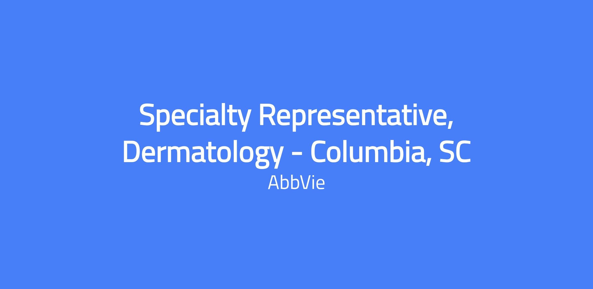 Specialty Representative, Dermatology - Columbia, SC