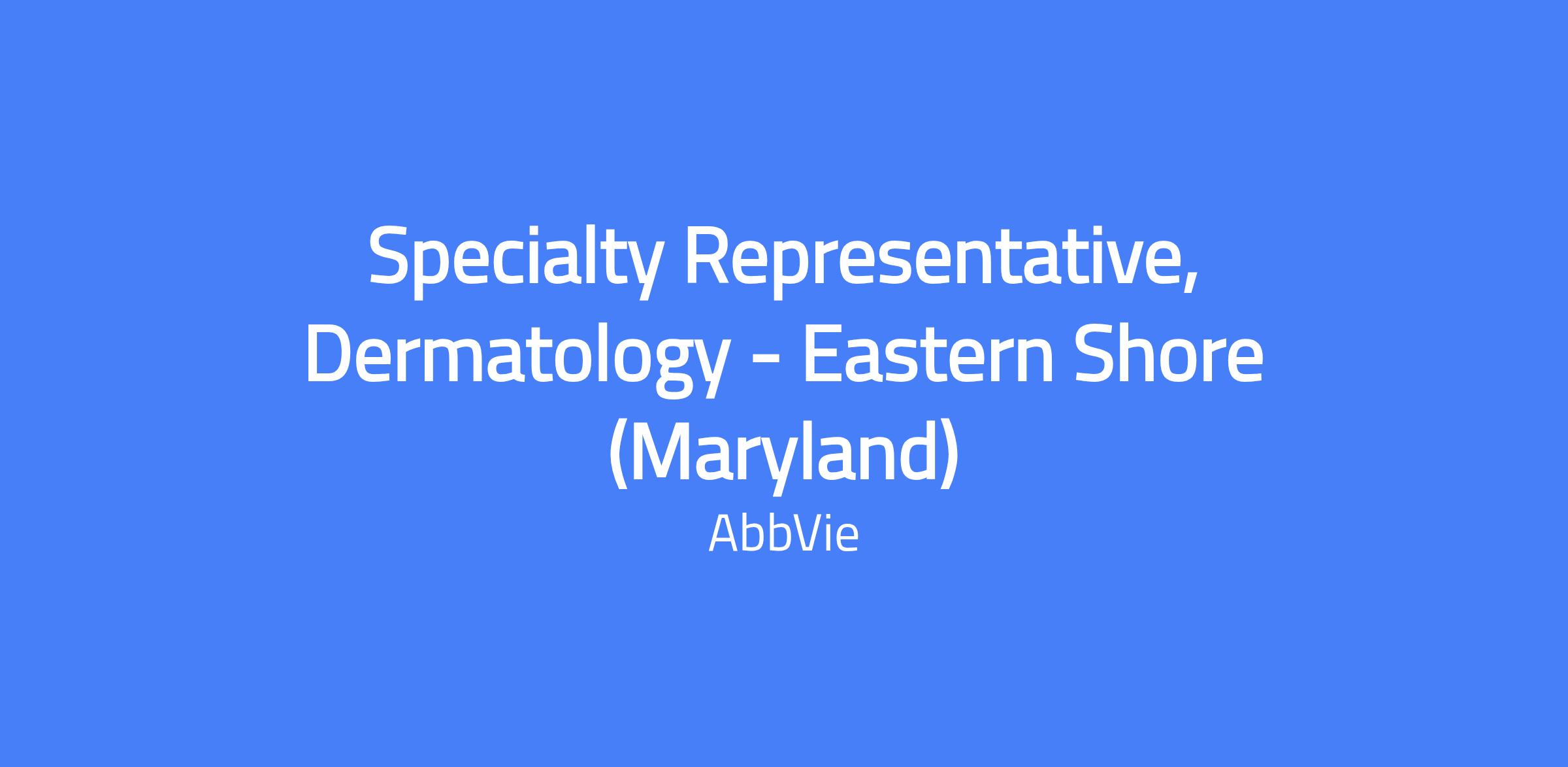 Specialty Representative, Dermatology - Eastern Shore (Maryland)