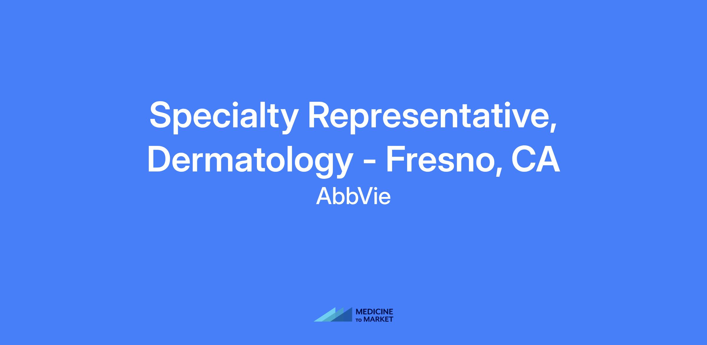 Specialty Representative, Dermatology - Fresno, CA. This field-based role covers Fresno and surrounding areas; talent will be hired at a level commensurate with experience.