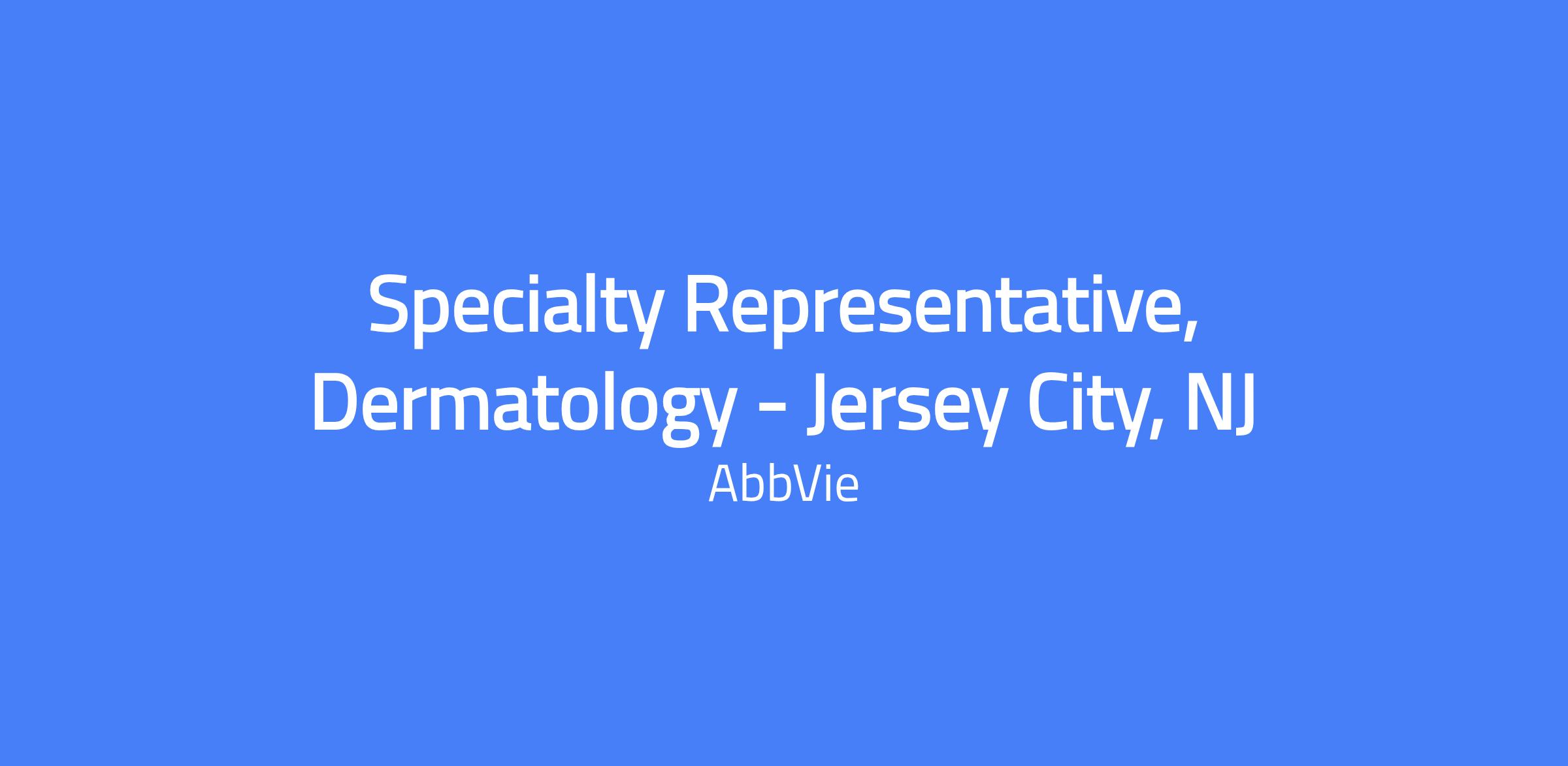 Field-based Specialty Representative, Dermatology serving Jersey City, NJ and surrounding area. The role covers Jersey City, Union, Orange, West Orange, Linden and nearby communities. You will execute brand strategy and field tactics, manage the assigned territory and targeted accounts, and build strong customer relationships and patient-centered solutions while complying with AbbVie’s code of conduct and all applicable laws.