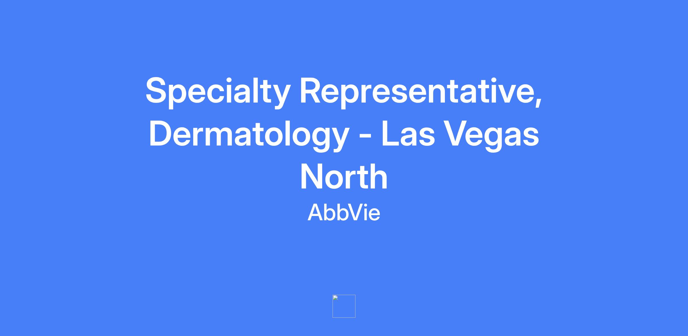Specialty Representative, Dermatology - Las Vegas North. Field-based role serving Northern Las Vegas, Summerlin, and Northern Nevada, with responsibilities to execute brand strategy and tactics in the field, manage territory and accounts, and build strong customer relationships to maximize short and long-term sales performance.