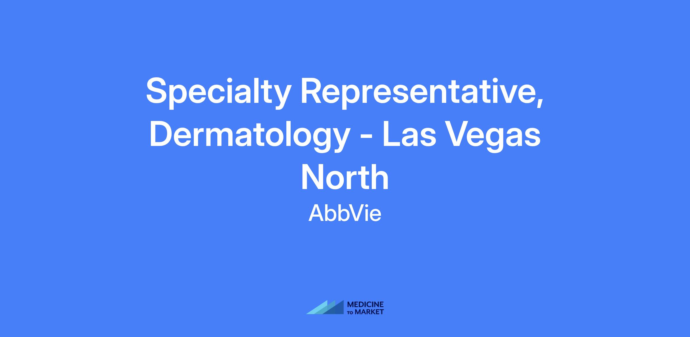 Specialty Representative, Dermatology - Las Vegas North. Field-based role serving Northern Las Vegas, Summerlin, and Northern Nevada, with responsibilities to execute brand strategy and tactics in the field, manage territory and accounts, and build strong customer relationships to maximize short and long-term sales performance.