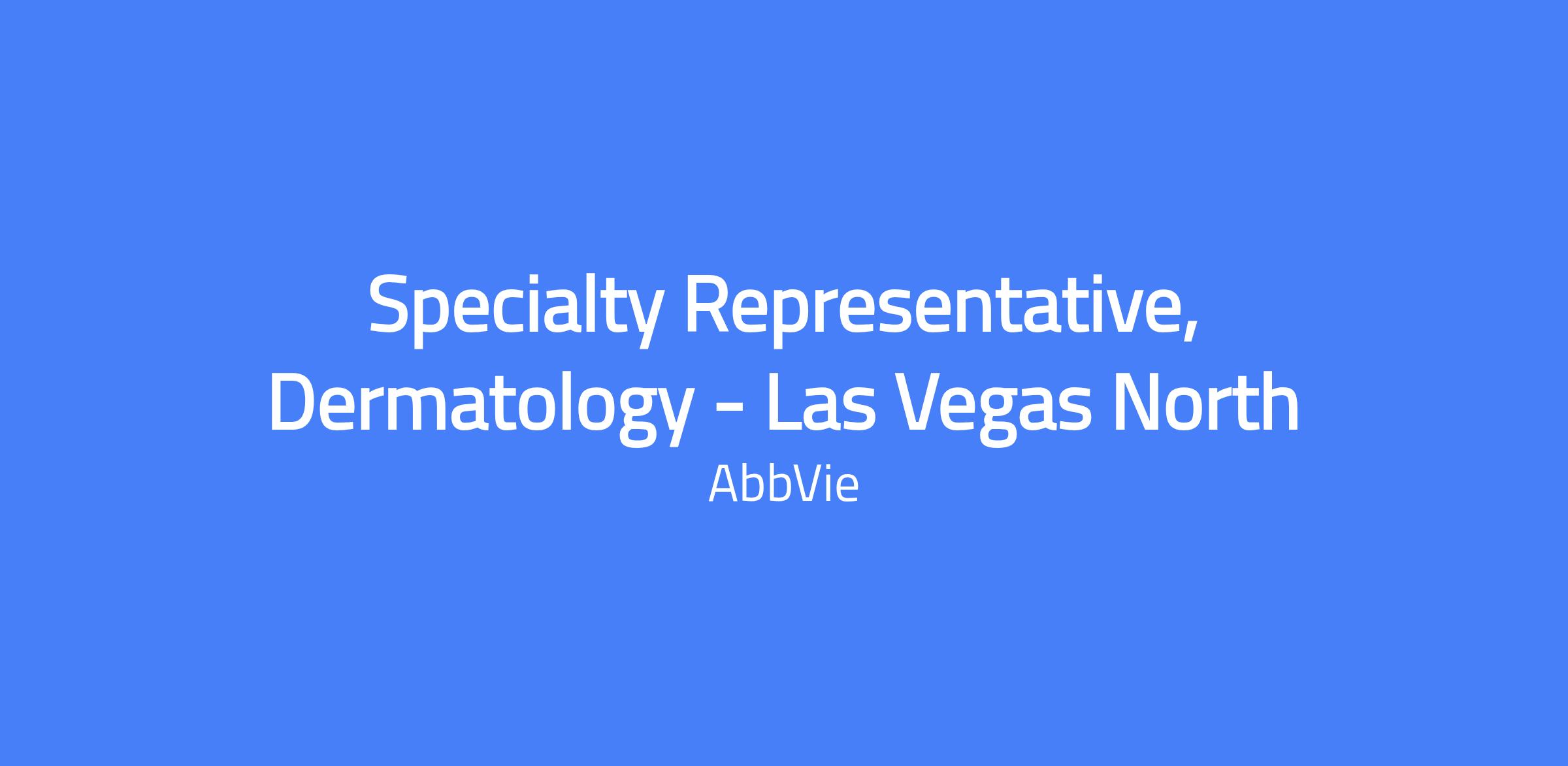This field-based Specialist role focuses on dermatology, covering Northern Las Vegas, Summerlin, and Northern Nevada. The incumbent will execute brand strategy and tactics in the field, manage the assigned territory and targeted accounts, build strong customer relationships, and solve customer needs to maximize short- and long-term sales performance while adhering to AbbVie’s policies and relevant laws.