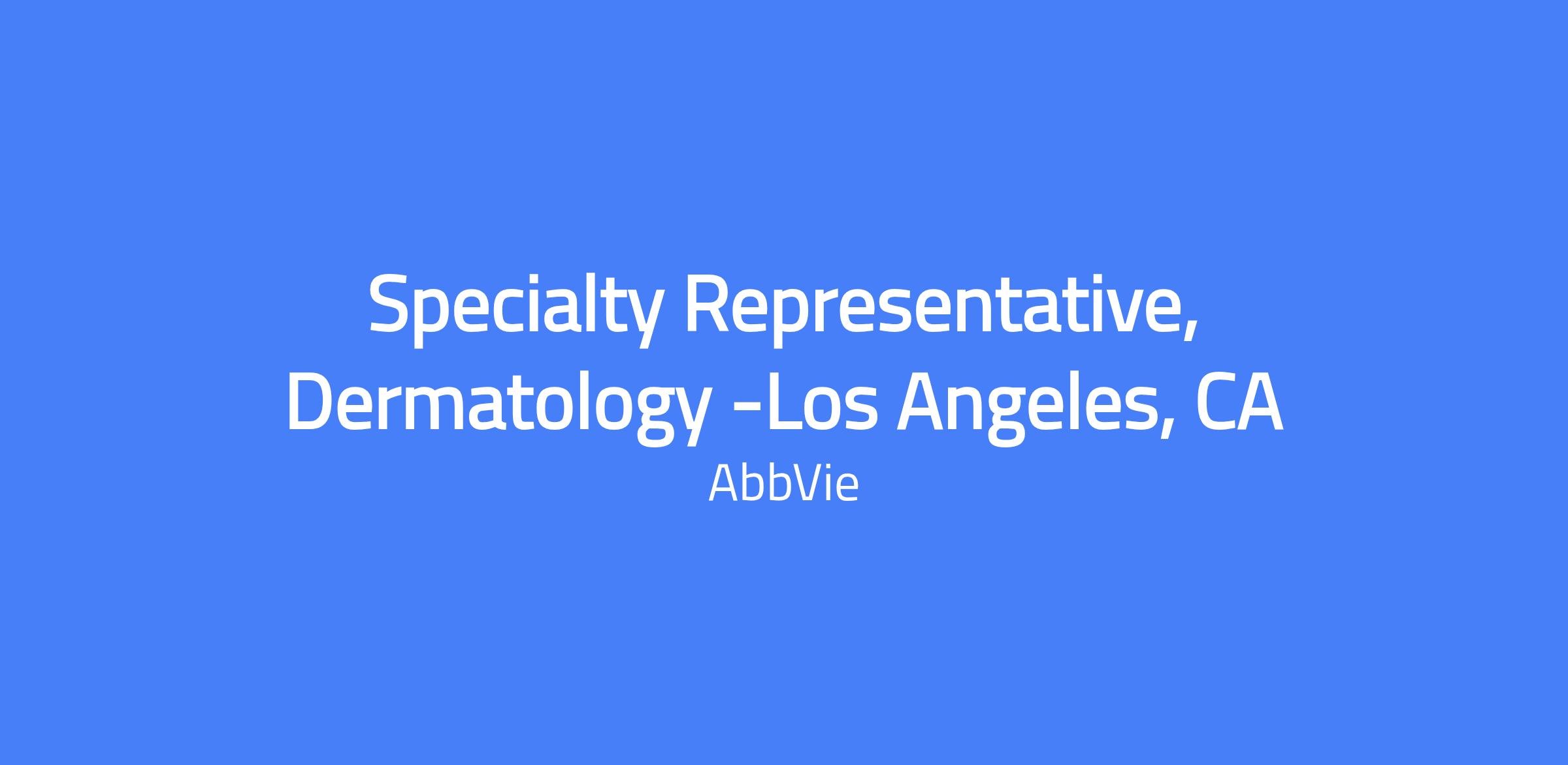 This field-based Specialty Representative, Dermatology role covers Los Angeles, Hawthorne, Redondo Beach, Downey, Orange, and surrounding areas. Talent will be hired at a level commensurate with experience. Execute brand strategy and tactics in the field, manage the assigned territory and targeted accounts, build strong customer relationships, and solve customer needs to maximize short and long-term sales performance while placing the patient at the center of efforts and operating within AbbVie’s code of conduct and applicable laws.