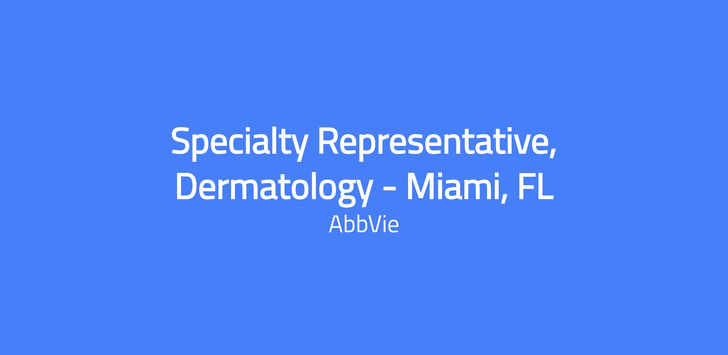 Specialty Representative, Dermatology - Miami, FL is a field-based sales role focused on promoting dermatology products within the assigned territory. You will execute brand strategy, manage territory and accounts, build strong relationships with healthcare providers, and solve customer needs while ensuring compliance with policies and regulations. The role requires living within a reasonable distance of the primary city and is hired at a level commensurate with experience.