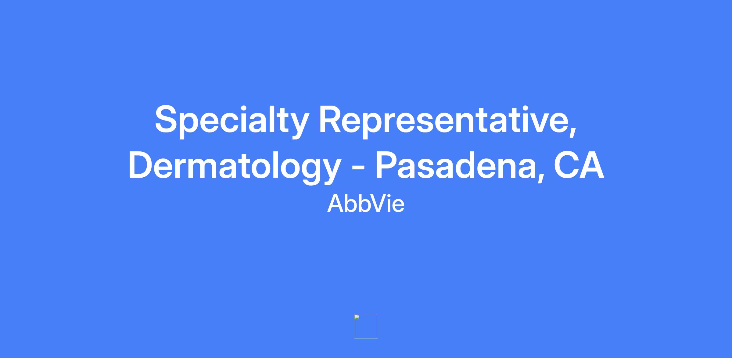 Specialty Representative, Dermatology - Pasadena, CA. Field-based role serving Pasadena and surrounding areas. Hires will be placed at a level commensurate with experience.