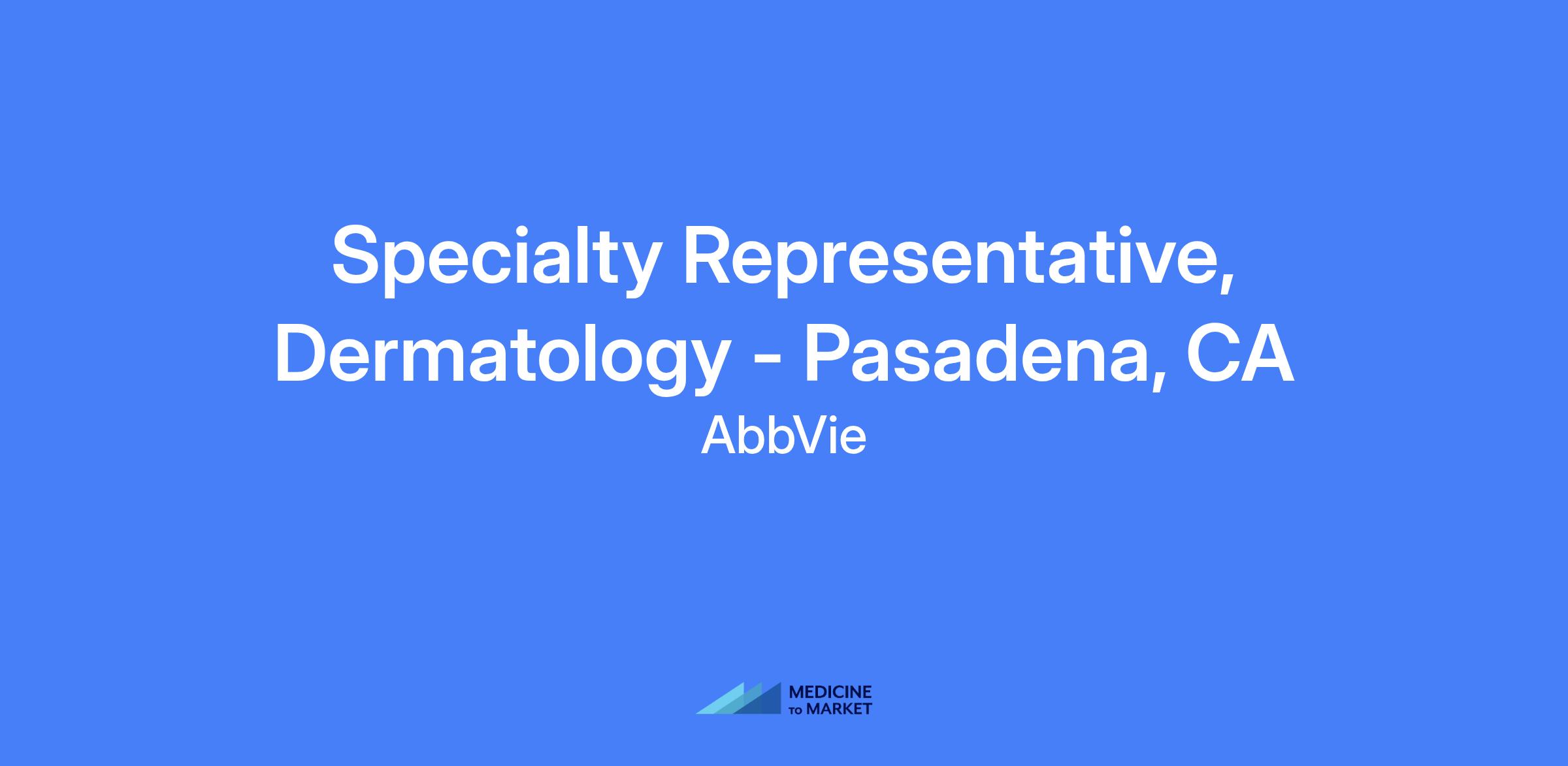 Specialty Representative, Dermatology - Pasadena, CA. Field-based role serving Pasadena and surrounding areas. Hires will be placed at a level commensurate with experience.