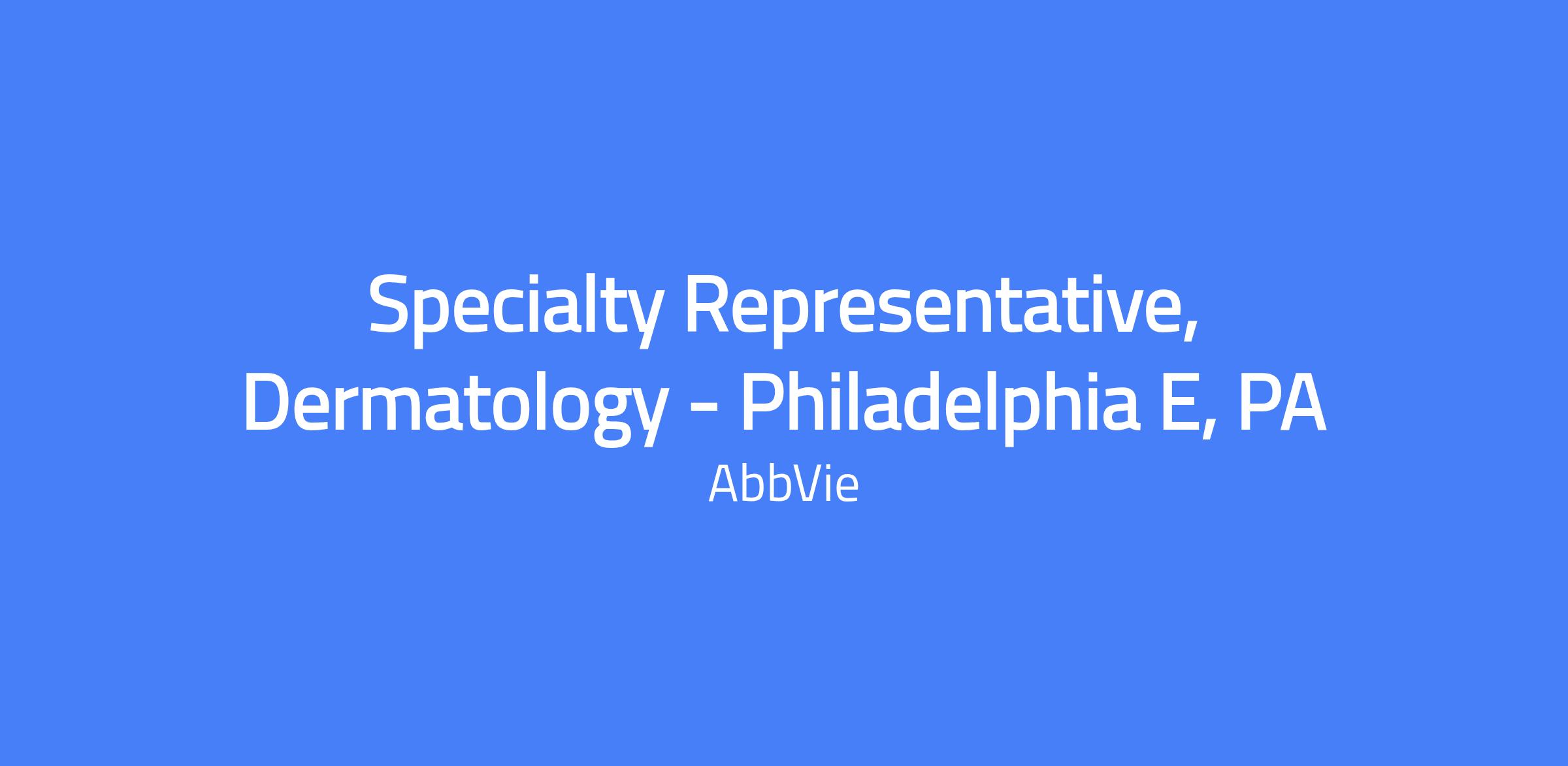 Field-based specialty sales representative based in Philadelphia East, PA, covering the Camden and Trenton area. The role requires residence within a reasonable distance from the primary city, and hires at a level commensurate with experience. You will execute field brand strategy, manage the assigned territory and targeted accounts, and build strong customer relationships to maximize short- and long-term sales, placing the patient at the center of AbbVie’s work and adhering to all applicable laws and the company's code of conduct.