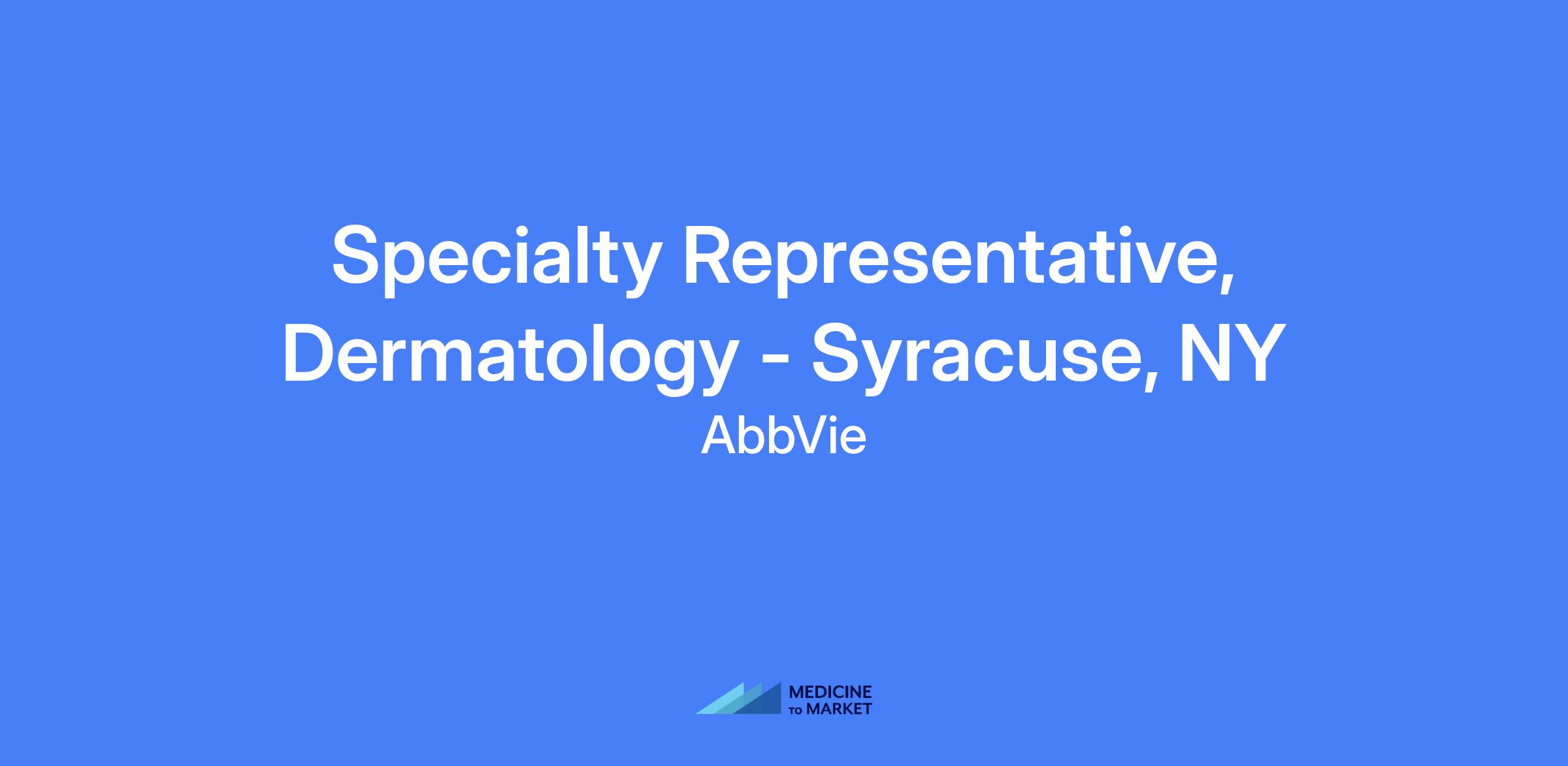 Field-based specialty sales role focused on Dermatology in the Syracuse, NY area. The incumbent will execute brand strategy, manage the territory and targeted accounts, build strong customer relationships, and drive short- and long-term sales performance while adhering to AbbVie’s code of conduct and all applicable laws and regulations.