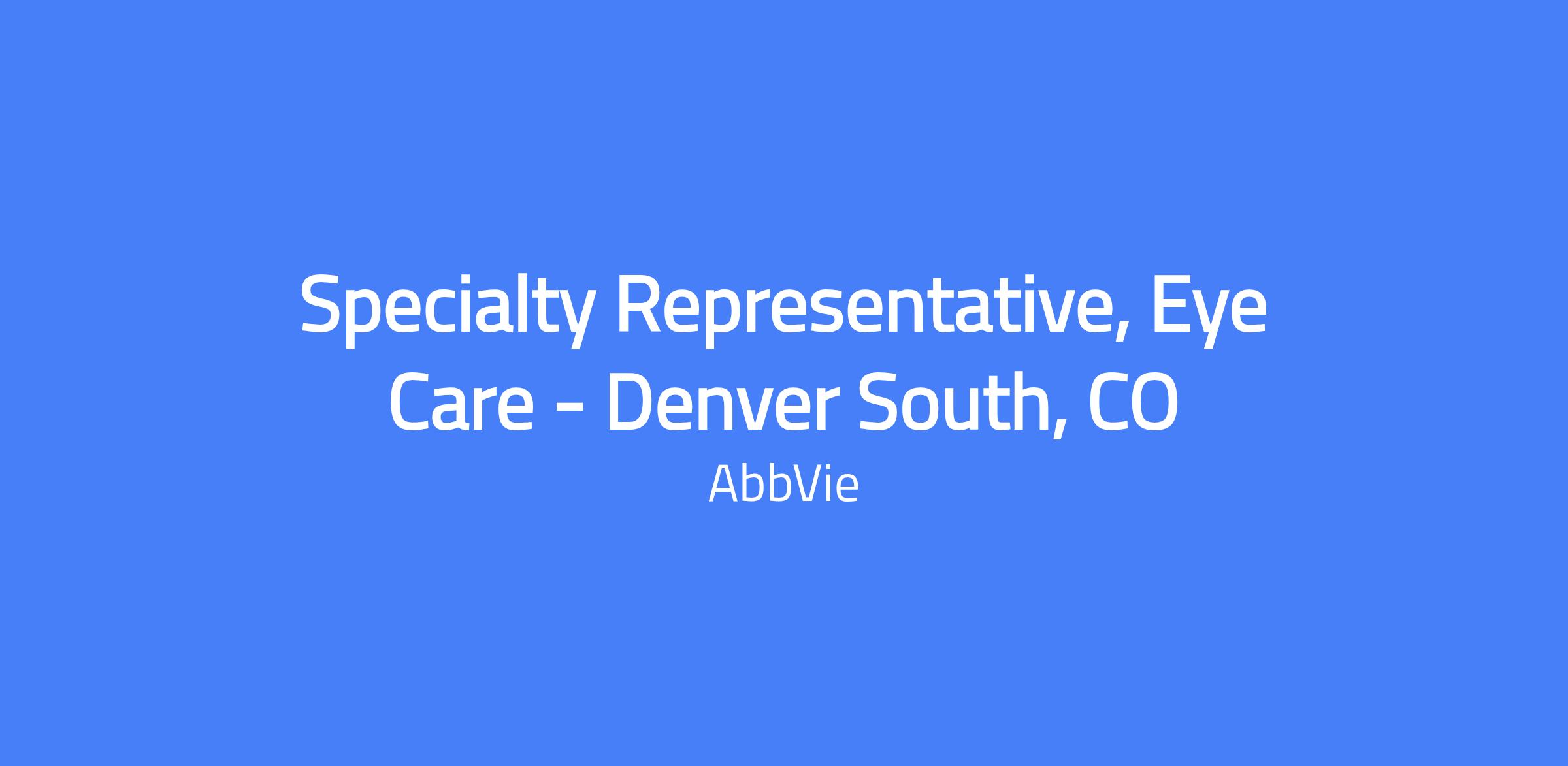 This field-based Specialty Representative, Eye Care role covers the Denver South, CO area. The role focuses on delivering sales performance, achieving brand KPIs and financial targets, and developing and executing call plans to maximize access and sales opportunities with key eye care customers. The position requires building trusted relationships, understanding customer needs and market dynamics, and differentiating AbbVie’s value proposition through disease state expertise and collaboration with the in-field team and stakeholders.