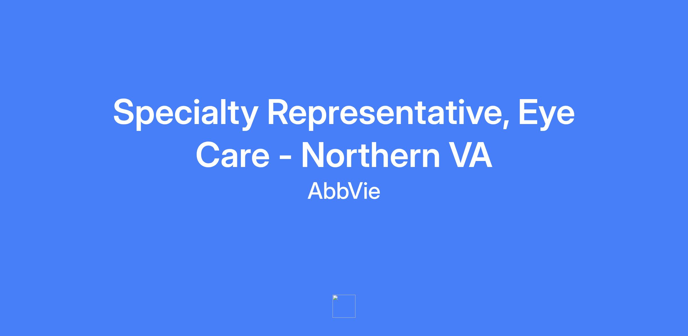 Specialty Representative, Eye Care - Northern VA. Field-based role; candidates should live within a reasonable distance from the primary city. Talent will be hired at a level commensurate with experience.