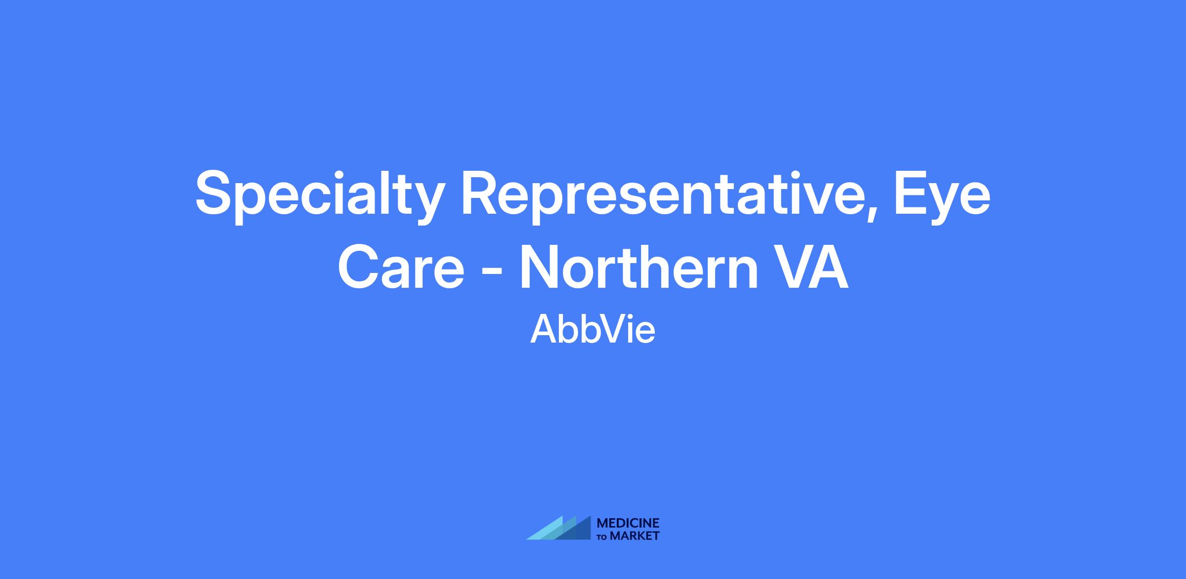 Specialty Representative, Eye Care - Northern VA. Field-based role; candidates should live within a reasonable distance from the primary city. Talent will be hired at a level commensurate with experience.