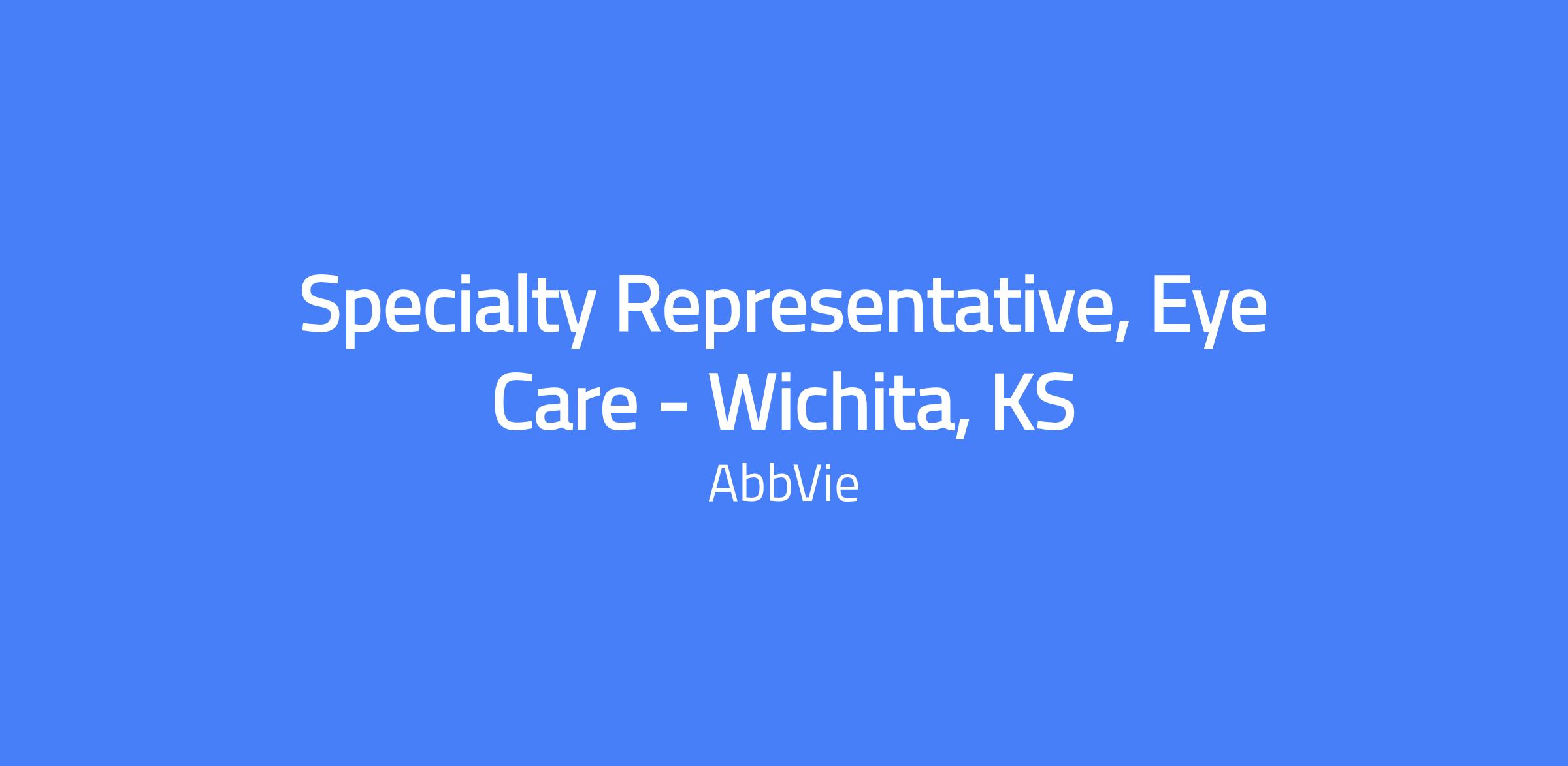 This field-based Specialty Representative, Eye Care role based in Wichita, KS is hired at a level commensurate with experience. The position focuses on delivering sales performance against objectives, developing and executing call plans, and building strong customer relationships to maximize access and brand performance within the eye care therapeutic area.
