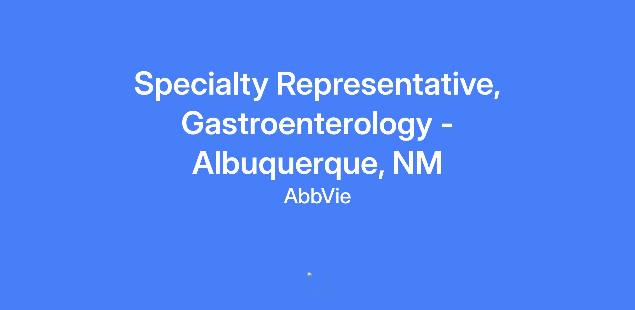 Specialty Representative, Gastroenterology - Albuquerque, NM. Field-based role covering New Mexico and surrounding areas. Responsible for executing brand strategy and tactics in the field, achieving sales performance, managing territory and accounts, building strong customer relationships, and solving customer needs to maximize short and long-term sales performance, while adhering to AbbVie’s code of conduct and all applicable laws and regulations.