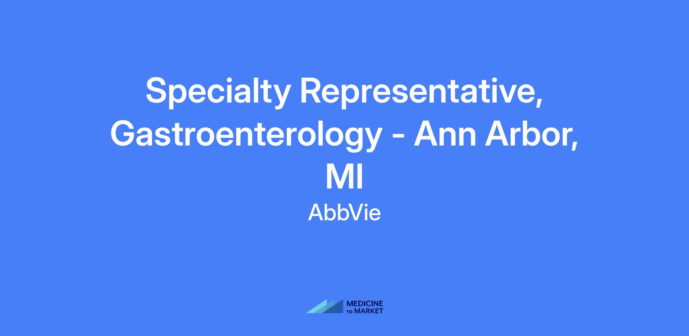 Specialty Representative, Gastroenterology - Ann Arbor, MI. Execute brand strategy and tactics in field, drive sales performance, manage assigned territory and targeted accounts, build strong customer relationships, and solve customer needs to maximize short and long-term sales performance while operating within AbbVie’s codes, policies, and applicable laws.