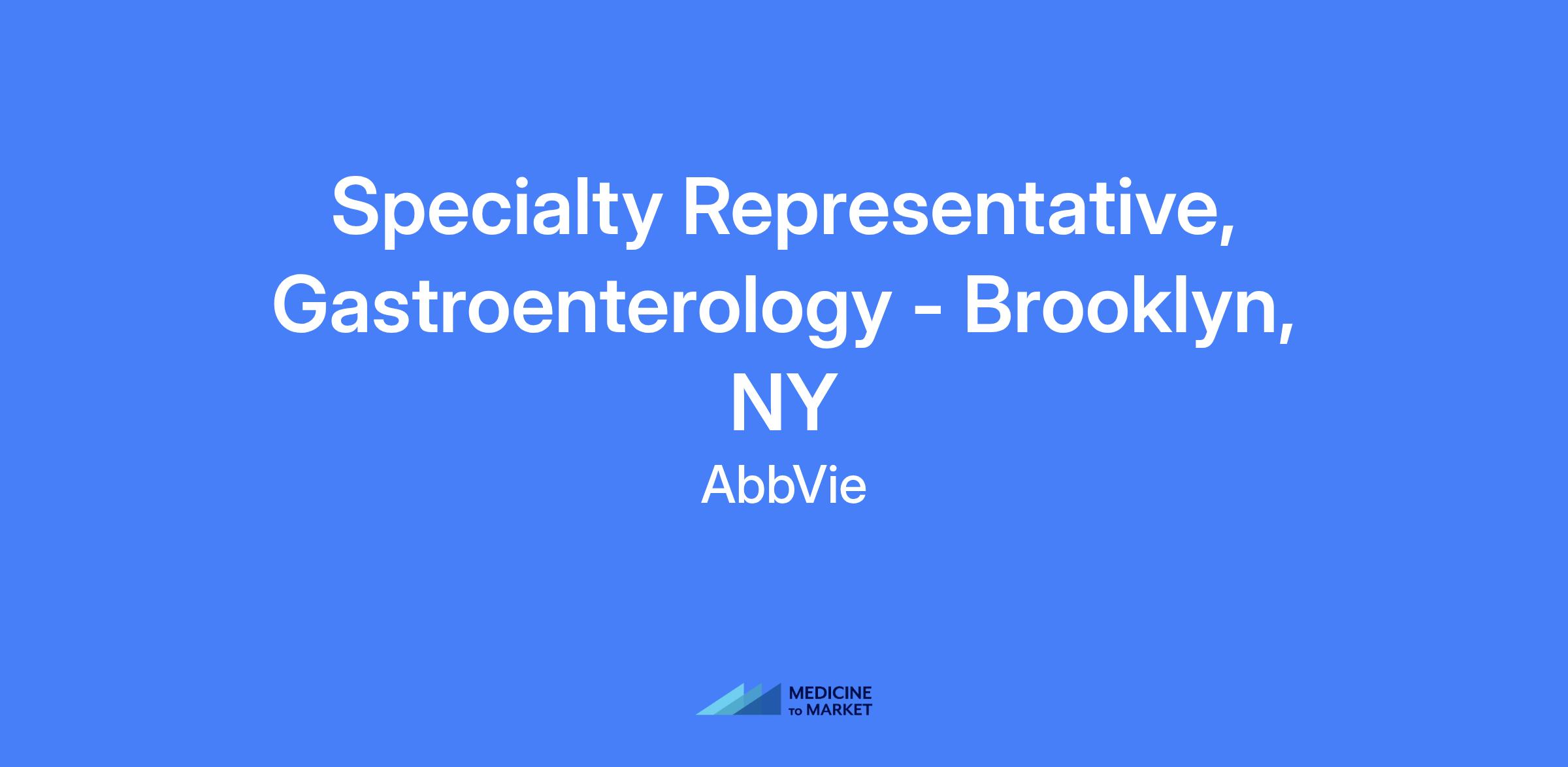 Specialty Representative, Gastroenterology - Brooklyn, NY. Execute brand strategy and tactics in the field, drive sales performance, manage assigned territory and targeted accounts, and build strong customer relationships to maximize short and long-term sales while placing the patient at the center and adhering to all laws and company policies.