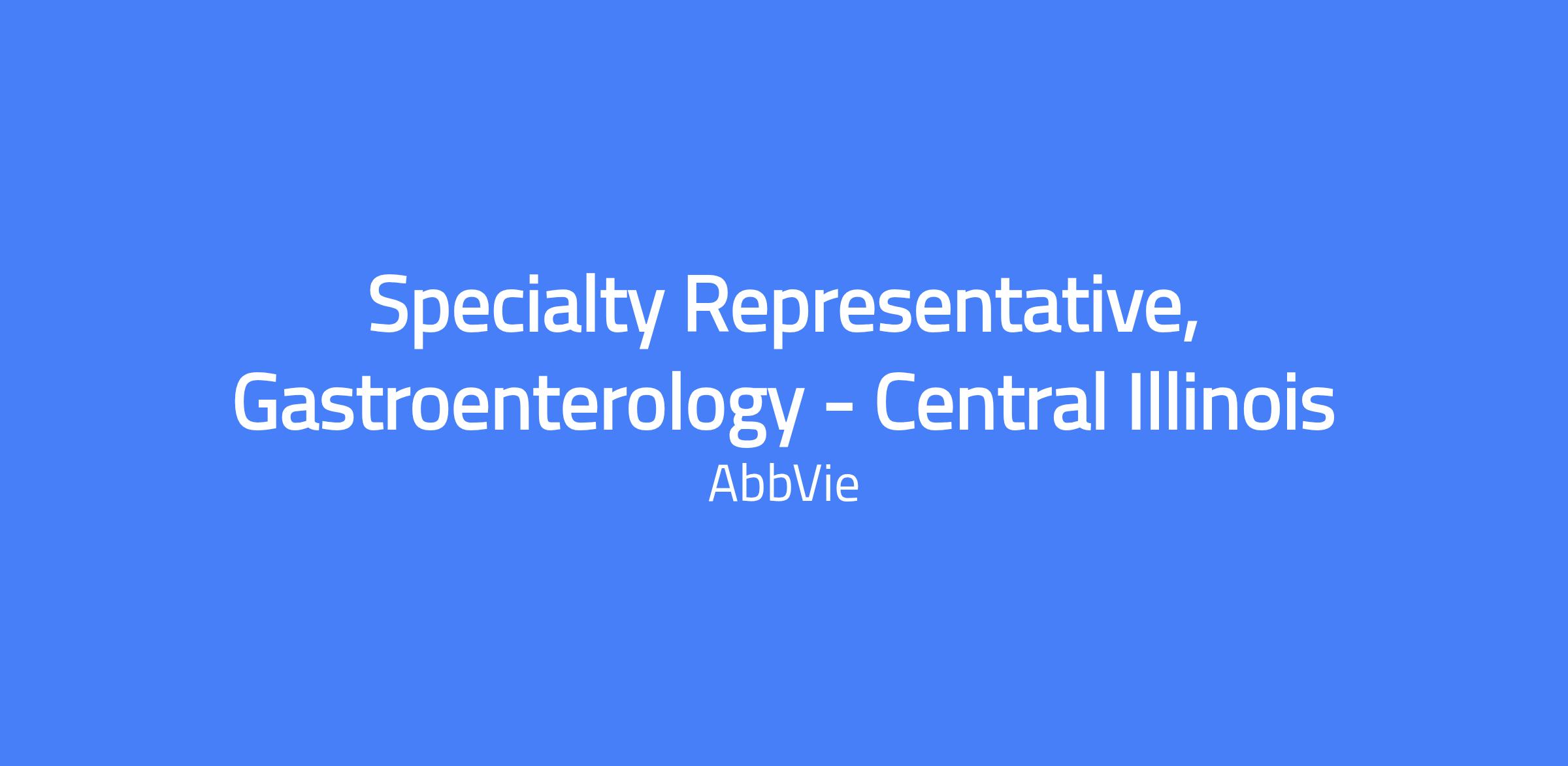 Specialty Representative, Gastroenterology – Central Illinois. This field-based role requires the candidate to live within a reasonable distance from the primary city. The territory includes Springfield, Peoria, Champaign, and Bloomington, IL. You will execute brand strategy and tactics in the field, drive sales performance, effectively manage the assigned territory and targeted accounts, and build strong customer relationships and a customer needs–solving capability to maximize short- and long-term sales while placing the patient at the center of AbbVie’s business code of conduct, policies and all applicable laws and regulations.