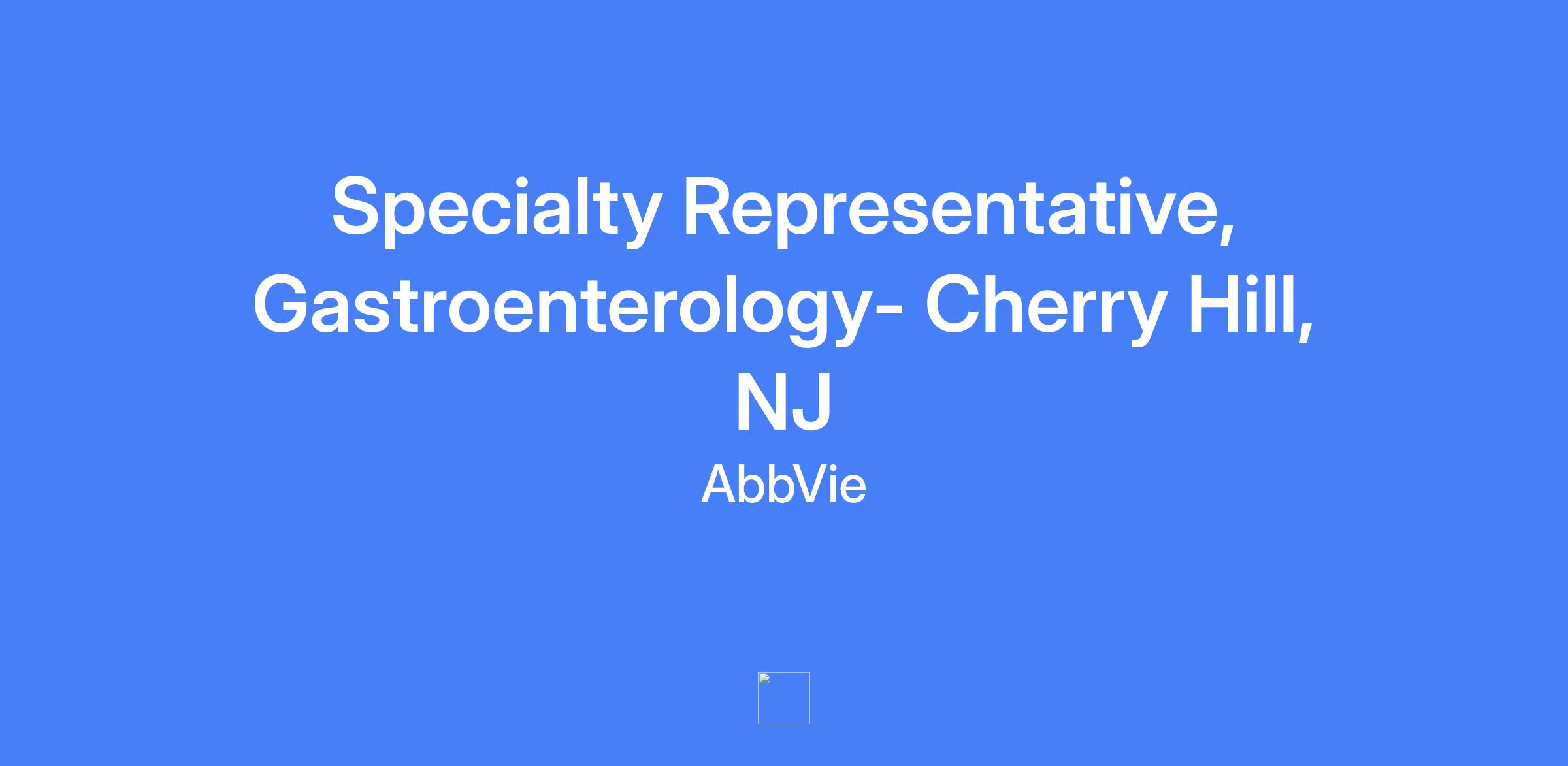 Specialty Representative, Gastroenterology - Cherry Hill, NJ. Field-based role; candidates should live within a reasonable distance from the primary city. Talent will be hired at a level commensurate with experience. Geography covers: Philadelphia, Camden, Atlantic City, Toms River, Lakewood, Vineland, Wilmington, DE.