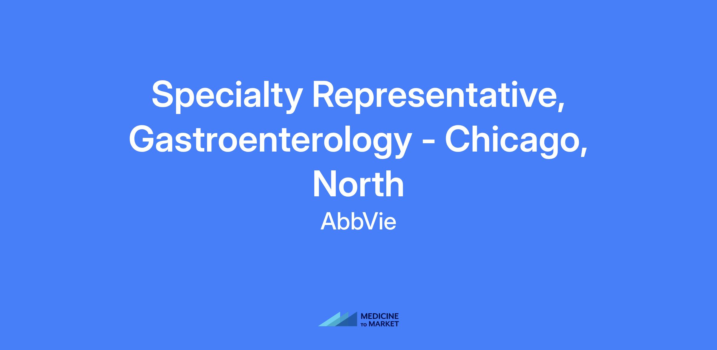 Specialty Representative, Gastroenterology - Chicago, North. Field-based role serving Chicago and surrounding areas, focusing on executing brand strategy, maximizing sales performance, and placing the patient at the center of AbbVie’s efforts within applicable laws and policies.