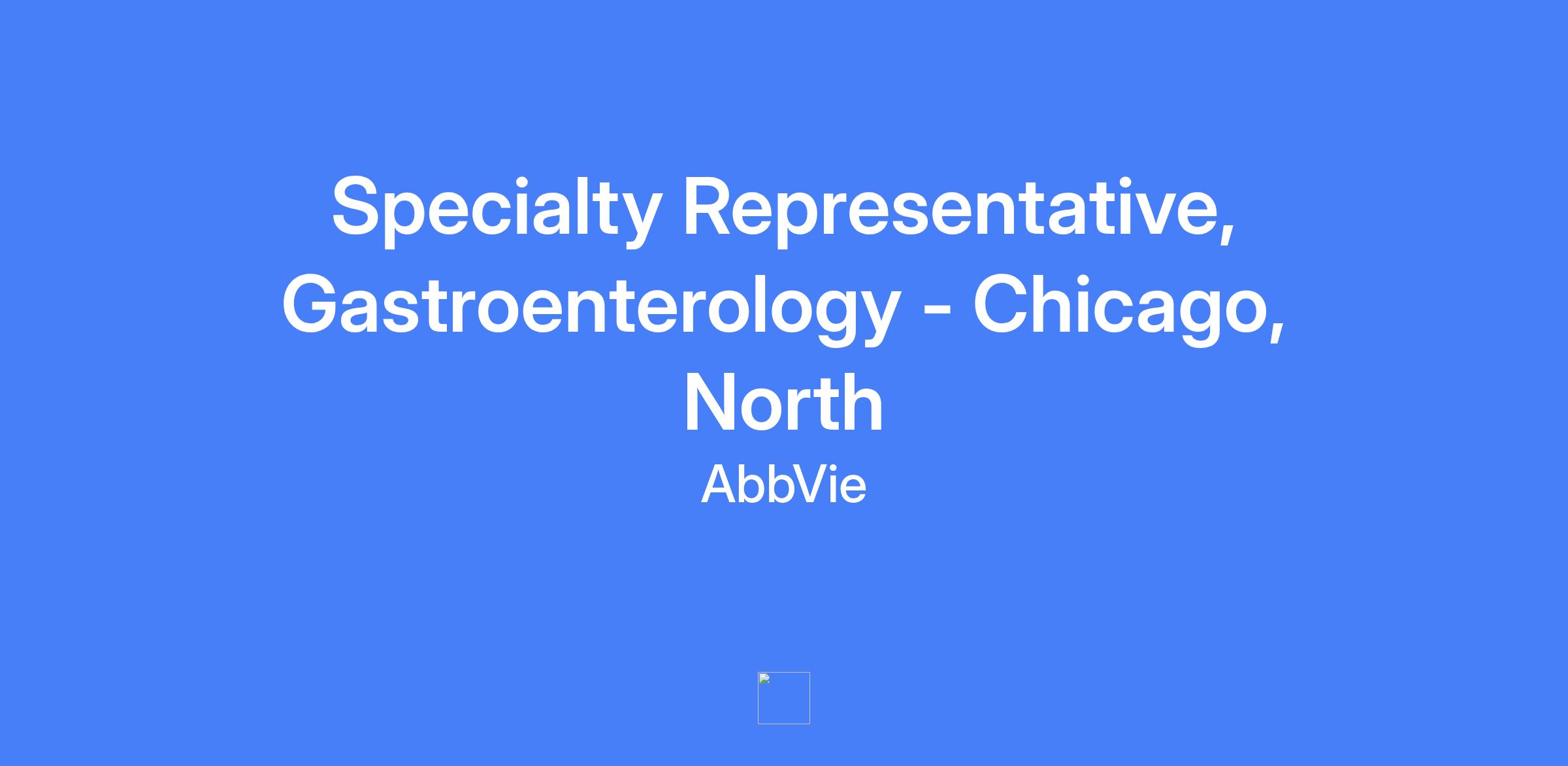 Specialty Representative, Gastroenterology - Chicago, North. Field-based role serving Chicago and surrounding areas, focusing on executing brand strategy, maximizing sales performance, and placing the patient at the center of AbbVie’s efforts within applicable laws and policies.