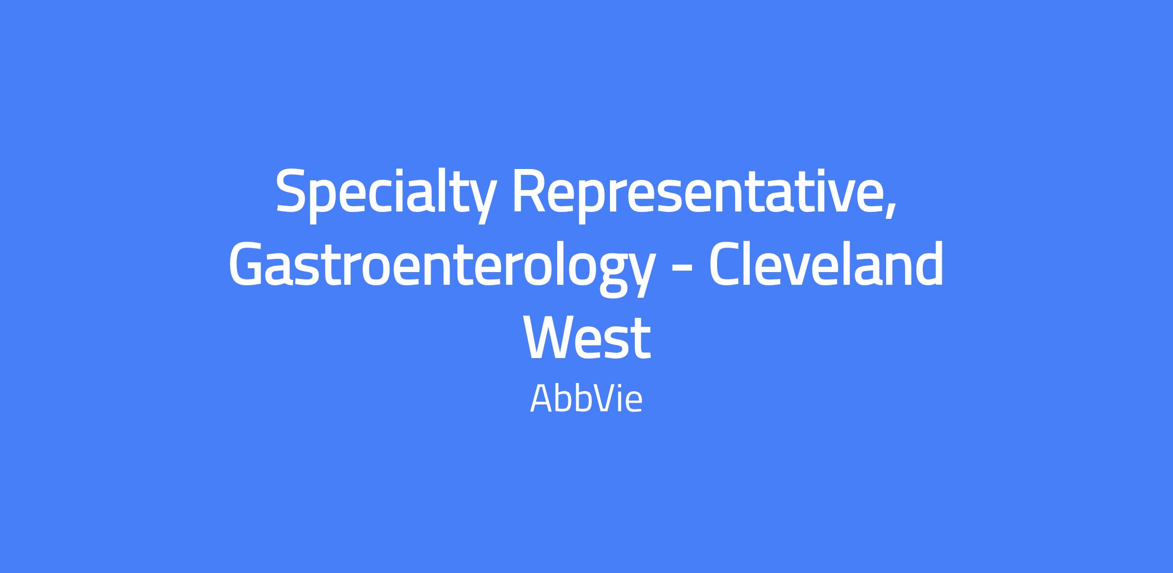 Specialty Representative, Gastroenterology - Cleveland West. Field-based role responsible for executing brand strategy, driving sales performance, and managing the assigned GI territory and targeted accounts. You will build strong customer relationships, address provider needs, and deliver patient-centered solutions while adhering to AbbVie’s code of conduct and all applicable laws. Candidates should live within a reasonable distance from the primary city.
