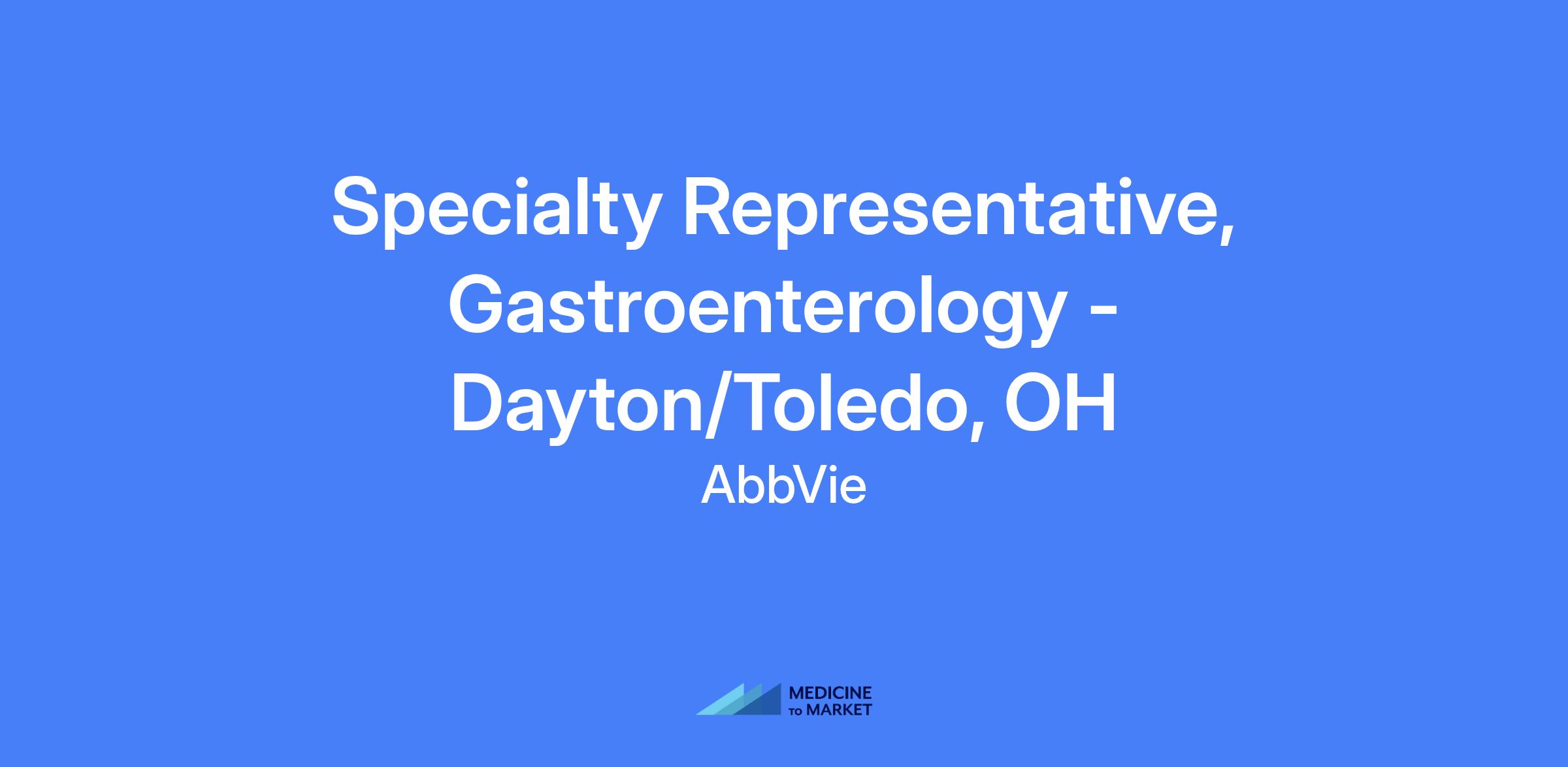 Specialty Representative, Gastroenterology - Dayton/Toledo, OH. Execute brand strategy and tactics in field, drive sales performance, effectively manage assigned territory and targeted accounts, build strong customer relationships, and solve customer needs to maximize short and long term sales performance with patient-centric focus and compliance with all laws and AbbVie policies.
