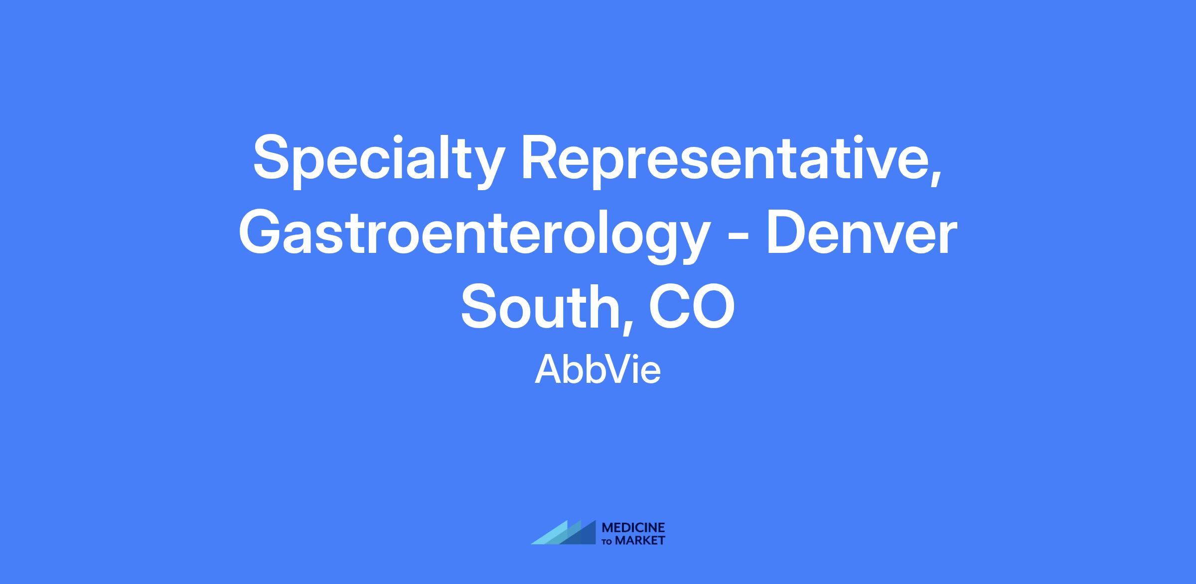 Specialty Representative, Gastroenterology - Denver South, CO. This field-based role covers Denver, Colorado Springs, Pueblo, Grand Junction, and surrounding areas. Responsible for executing brand strategy and tactics in the field, driving sales performance, managing territory and accounts, and solving customer needs while maintaining AbbVie’s code of conduct and compliance with applicable laws.