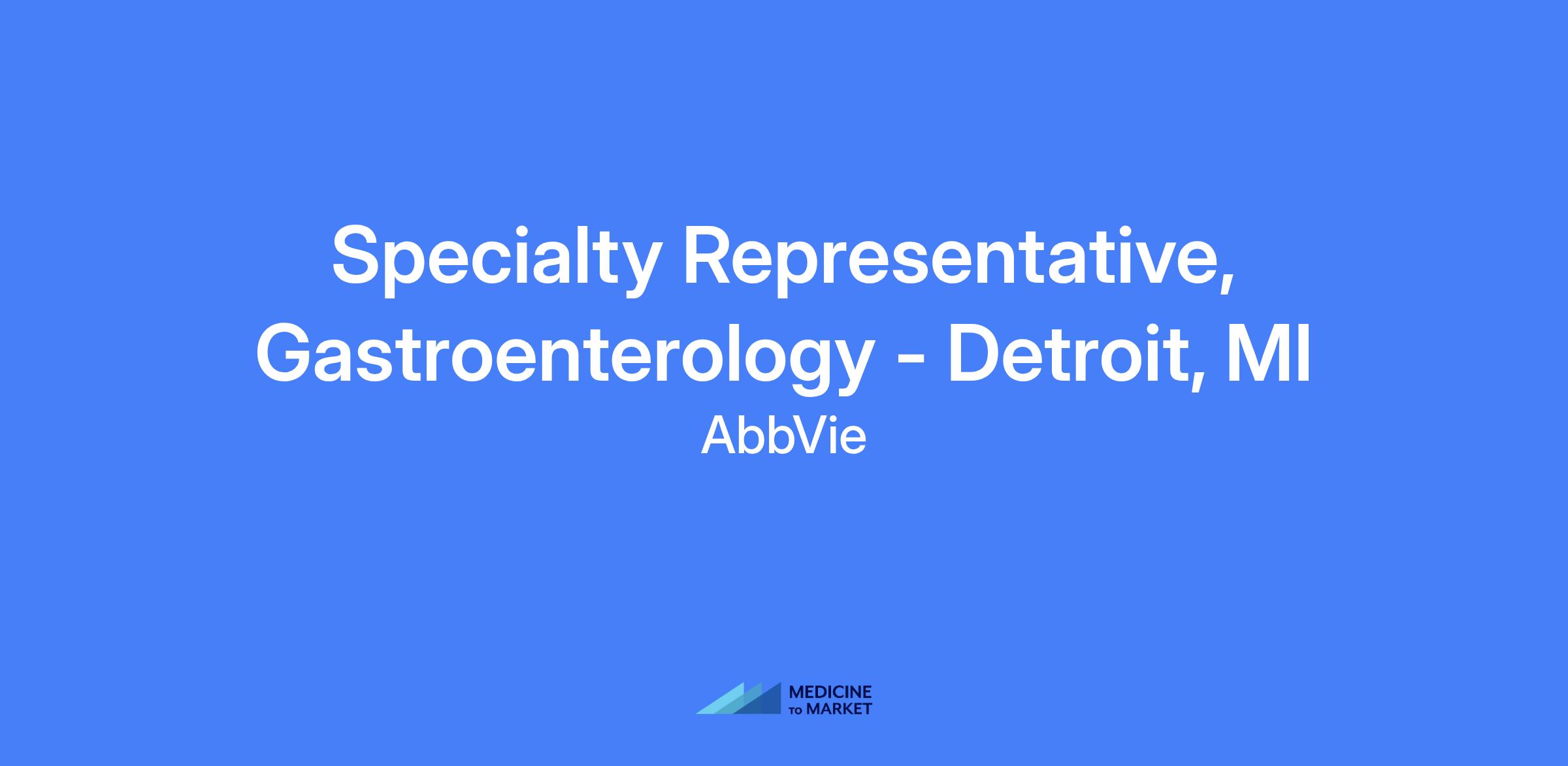 Specialty Representative, Gastroenterology - Detroit, MI. Execute brand strategy and tactics in field, drive sales performance, manage assigned territory and targeted accounts, build strong customer relationships, and solve customer needs to maximize short and long-term sales while placing the patient at the center of efforts and operating within AbbVie’s code of conduct and applicable laws.