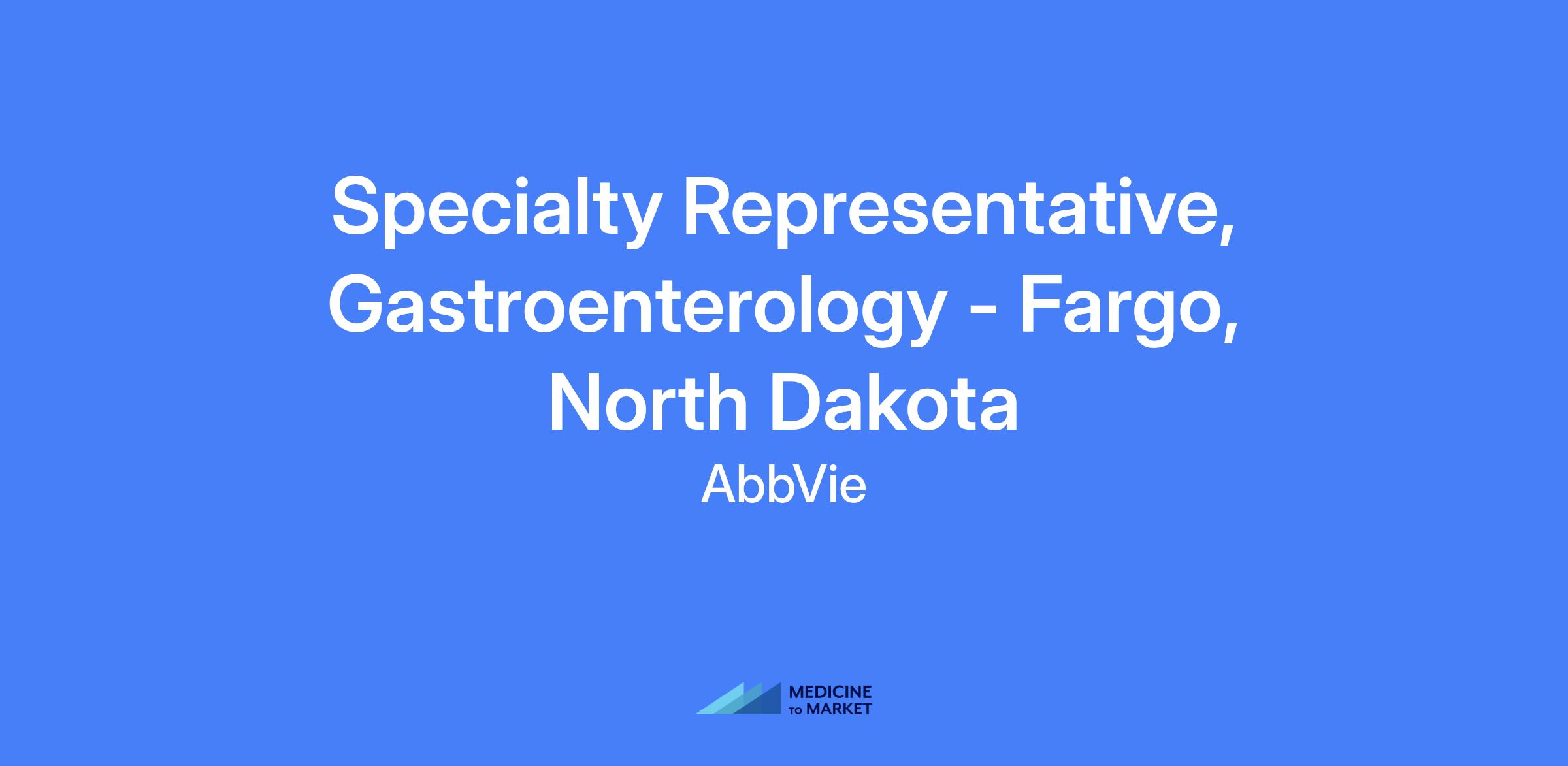 Specialty Representative, Gastroenterology - Fargo, North Dakota. Field-based role serving Fargo, Sioux Falls, Bismarck and surrounding areas. Responsible for executing brand strategy, managing territory and targeted accounts, building strong customer relationships, and solving customer needs to maximize short and long-term sales performance while adhering to AbbVie’s code of conduct and applicable laws.