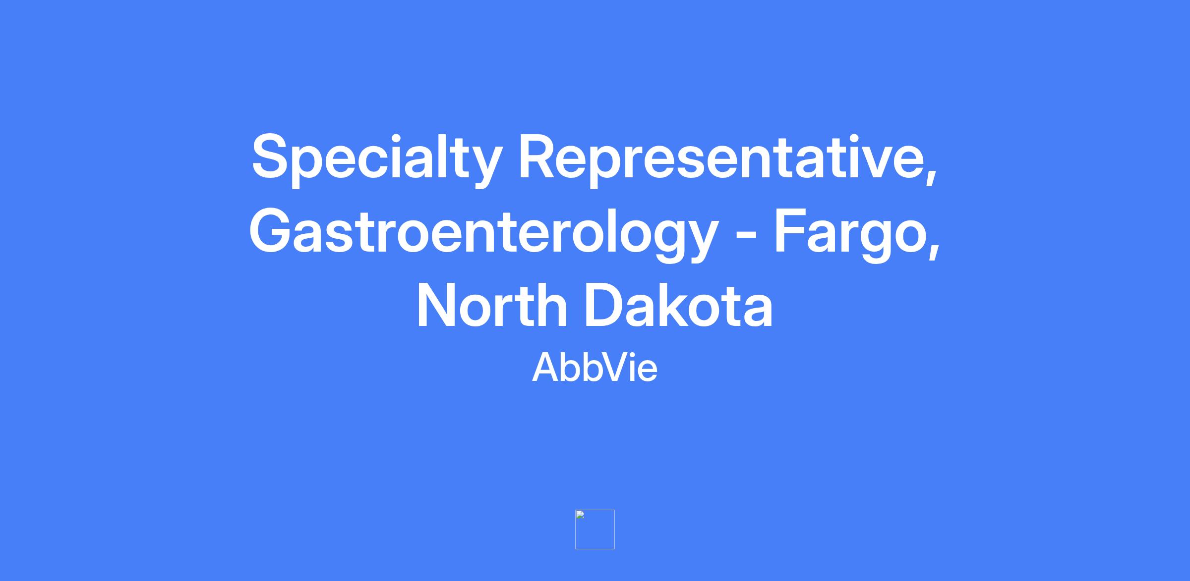 Specialty Representative, Gastroenterology - Fargo, North Dakota. Field-based role serving Fargo, Sioux Falls, Bismarck and surrounding areas. Responsible for executing brand strategy, managing territory and targeted accounts, building strong customer relationships, and solving customer needs to maximize short and long-term sales performance while adhering to AbbVie’s code of conduct and applicable laws.