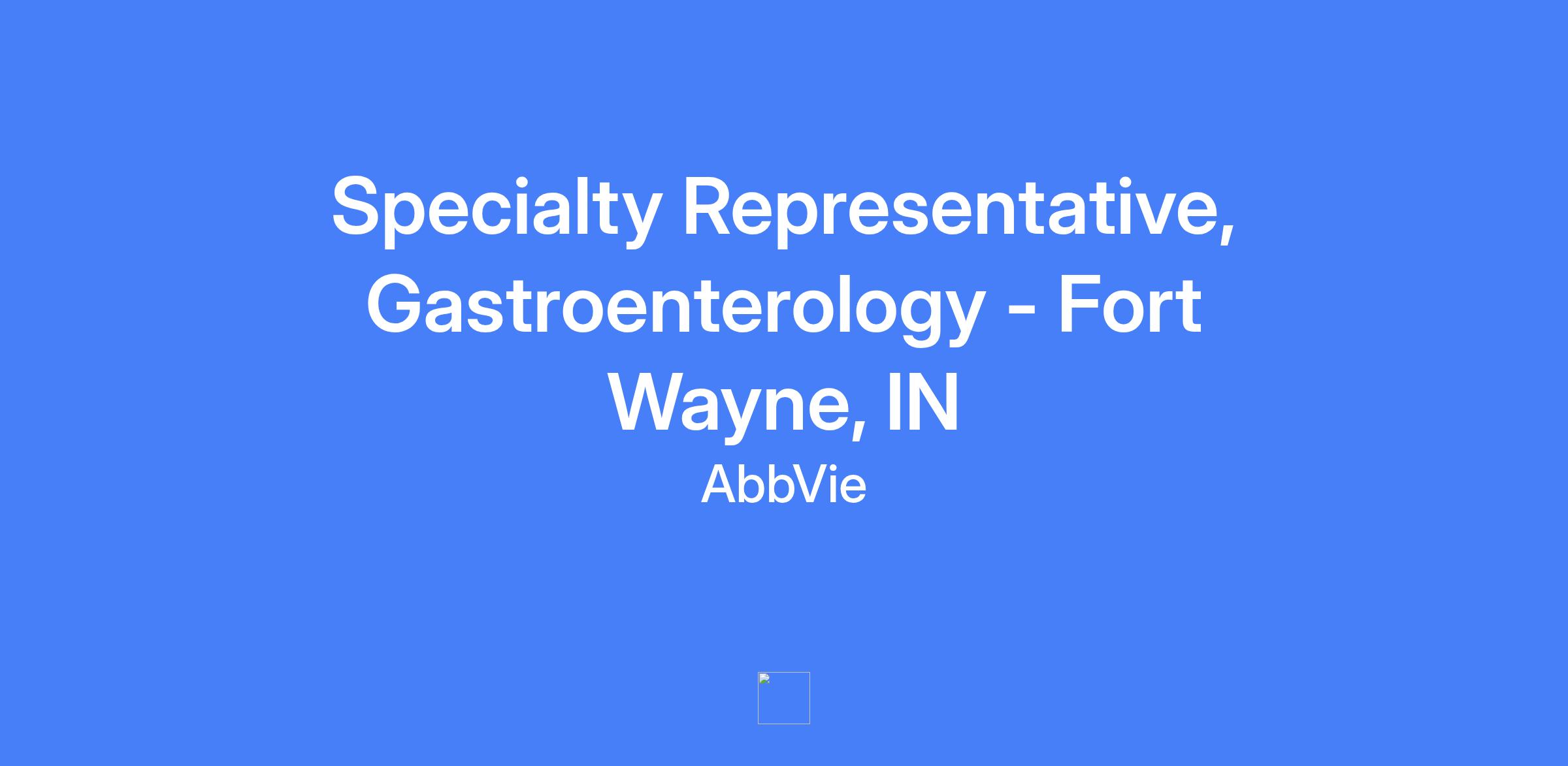 Specialty Representative, Gastroenterology - Fort Wayne, IN. Execute brand strategy and tactics in field, drive sales performance, manage assigned territory and targeted accounts, build strong customer relationships, and solve customer needs to maximize short and long term sales performance with the patient at the center and in compliance with AbbVie’s code of conduct and all applicable laws and regulations.