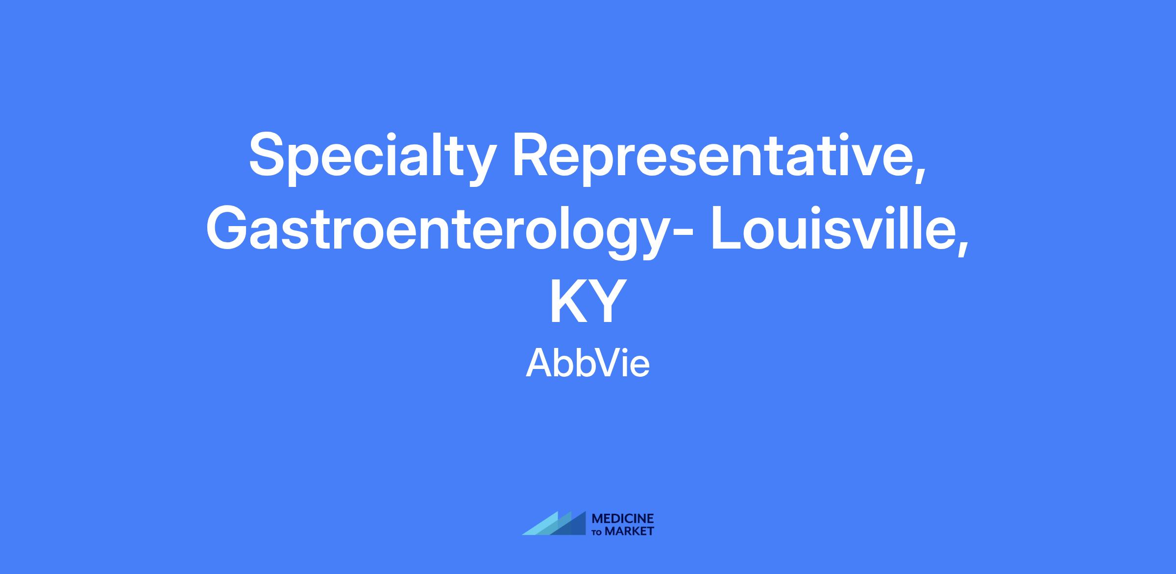 Specialty Representative, Gastroenterology- Louisville, KY. This field-based role covers Louisville and surrounding areas. Talent will be hired at a level commensurate with experience.