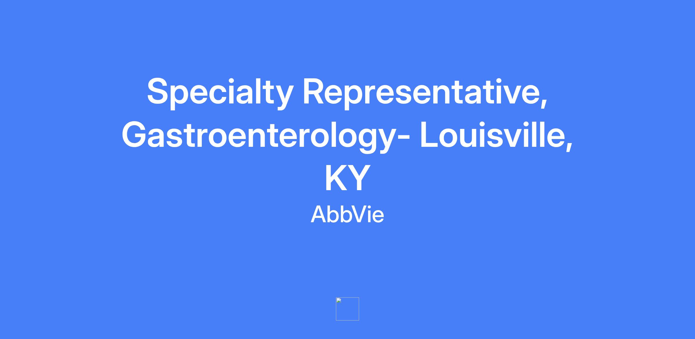 Specialty Representative, Gastroenterology- Louisville, KY. This field-based role covers Louisville and surrounding areas. Talent will be hired at a level commensurate with experience.