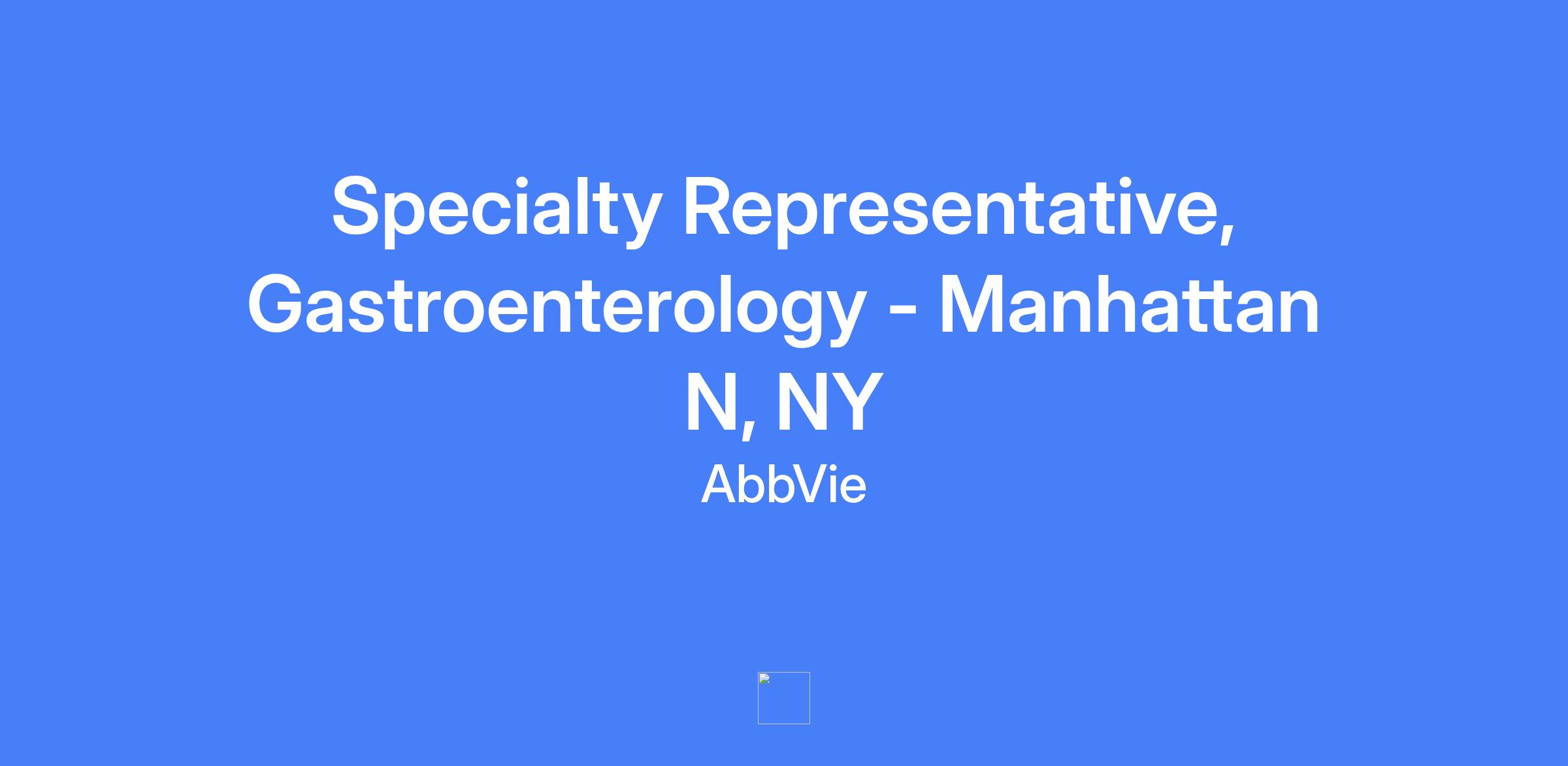 Specialty Representative, Gastroenterology - Manhattan N, NY. Execute brand strategy and tactics in field, drive sales performance, manage assigned territory and targeted accounts, build strong customer relationships, and solve customer needs to maximize short- and long-term sales, placing the patient at the center and operating within company policies and all applicable laws and regulations.