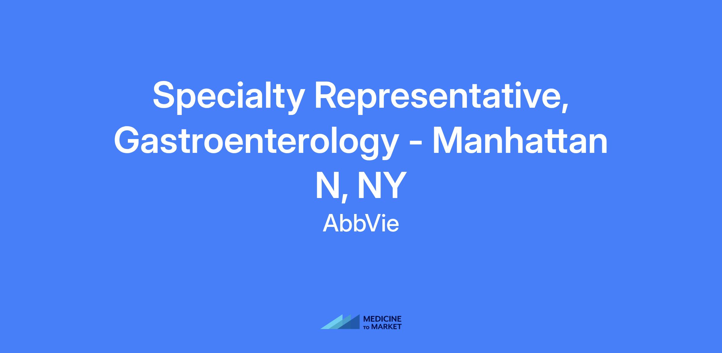 Specialty Representative, Gastroenterology - Manhattan N, NY. Execute brand strategy and tactics in field, drive sales performance, manage assigned territory and targeted accounts, build strong customer relationships, and solve customer needs to maximize short- and long-term sales, placing the patient at the center and operating within company policies and all applicable laws and regulations.