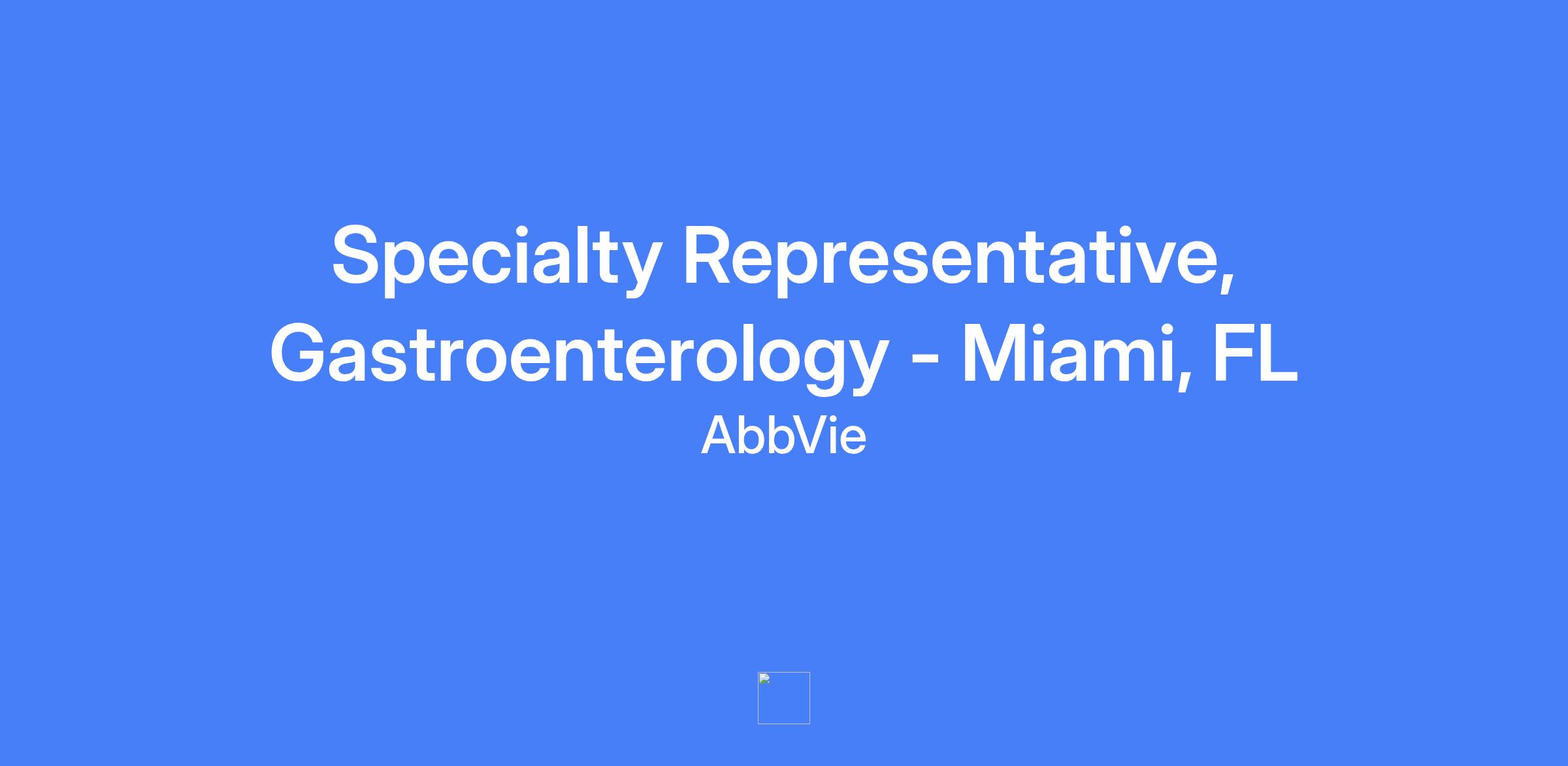 Specialty Representative, Gastroenterology - Miami, FL. Field-based role covering Miami, Coral Gables, Hialeah, Hollywood, North Miami Beach, Lauderdale Lakes. Responsible for executing brand strategy and tactics in the field, managing the assigned territory and targeted accounts, building strong customer relationships, and solving customer needs to maximize short and long term sales performance while operating within AbbVie’s code of conduct and all applicable laws and regulations.