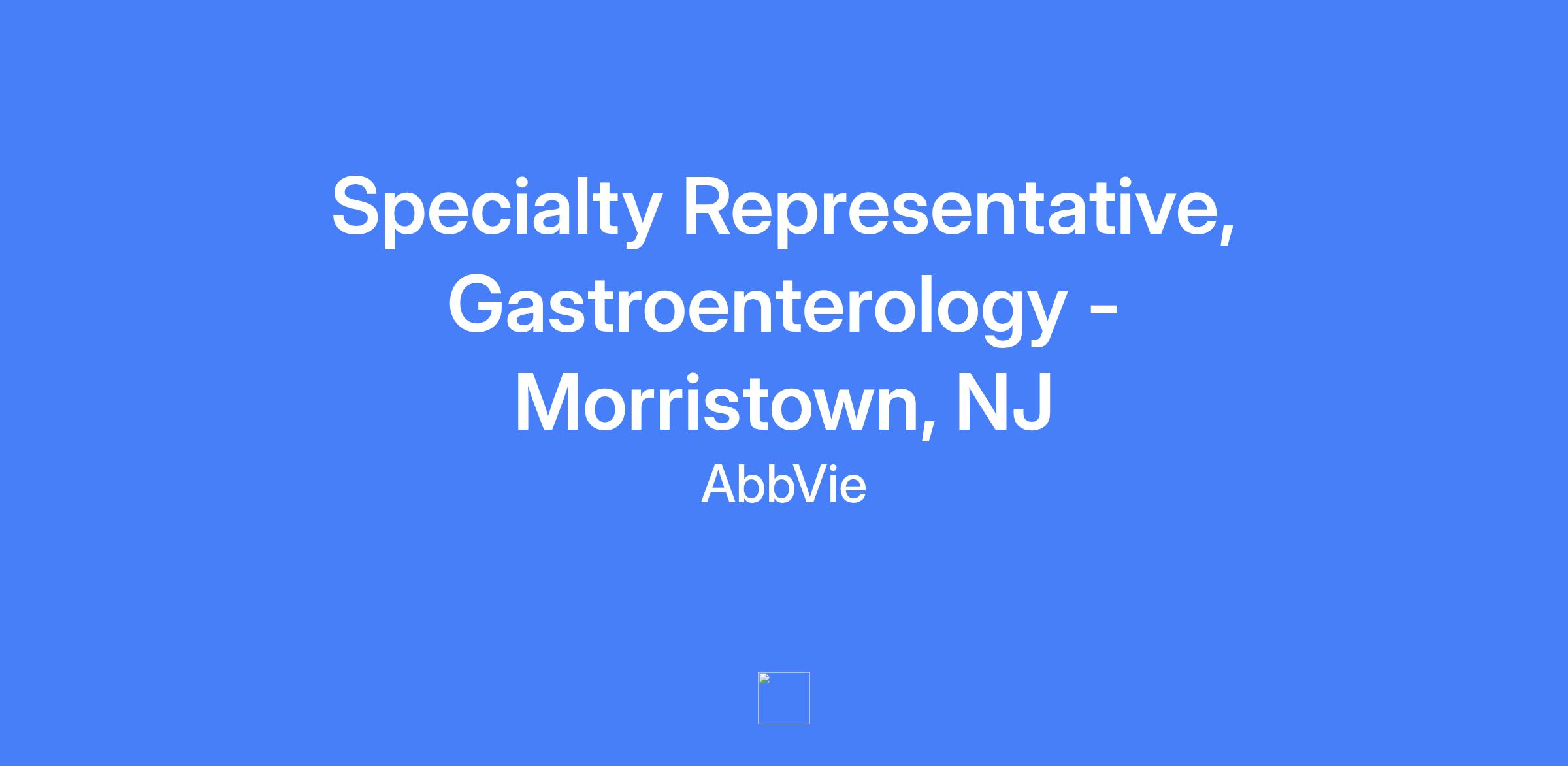 Specialty Representative, Gastroenterology - Morristown, NJ. Field-based role covering Morristown, Princeton, and surrounding areas. Execute brand strategy and tactics in the field to maximize short and long-term sales performance, focusing on patient-centered outcomes and compliance with all laws and AbbVie policies.